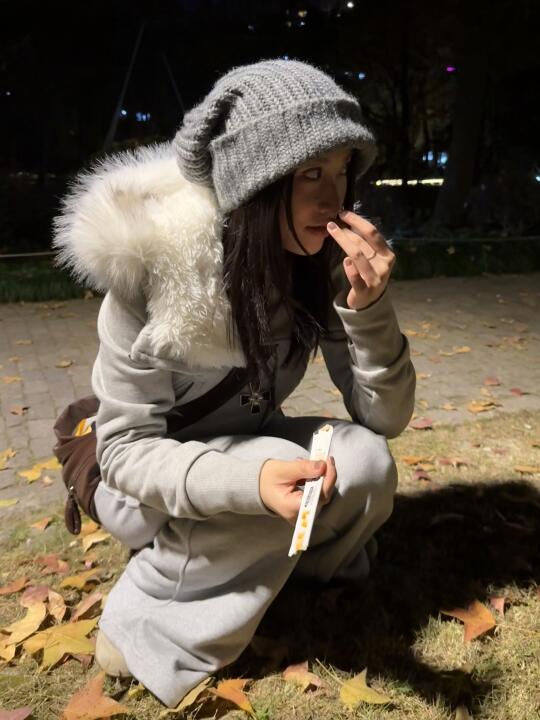 晚上走在街上,看见个少女,长得那叫一个好看。她脸上化着精致的淡妆,眼睛亮晶晶的。