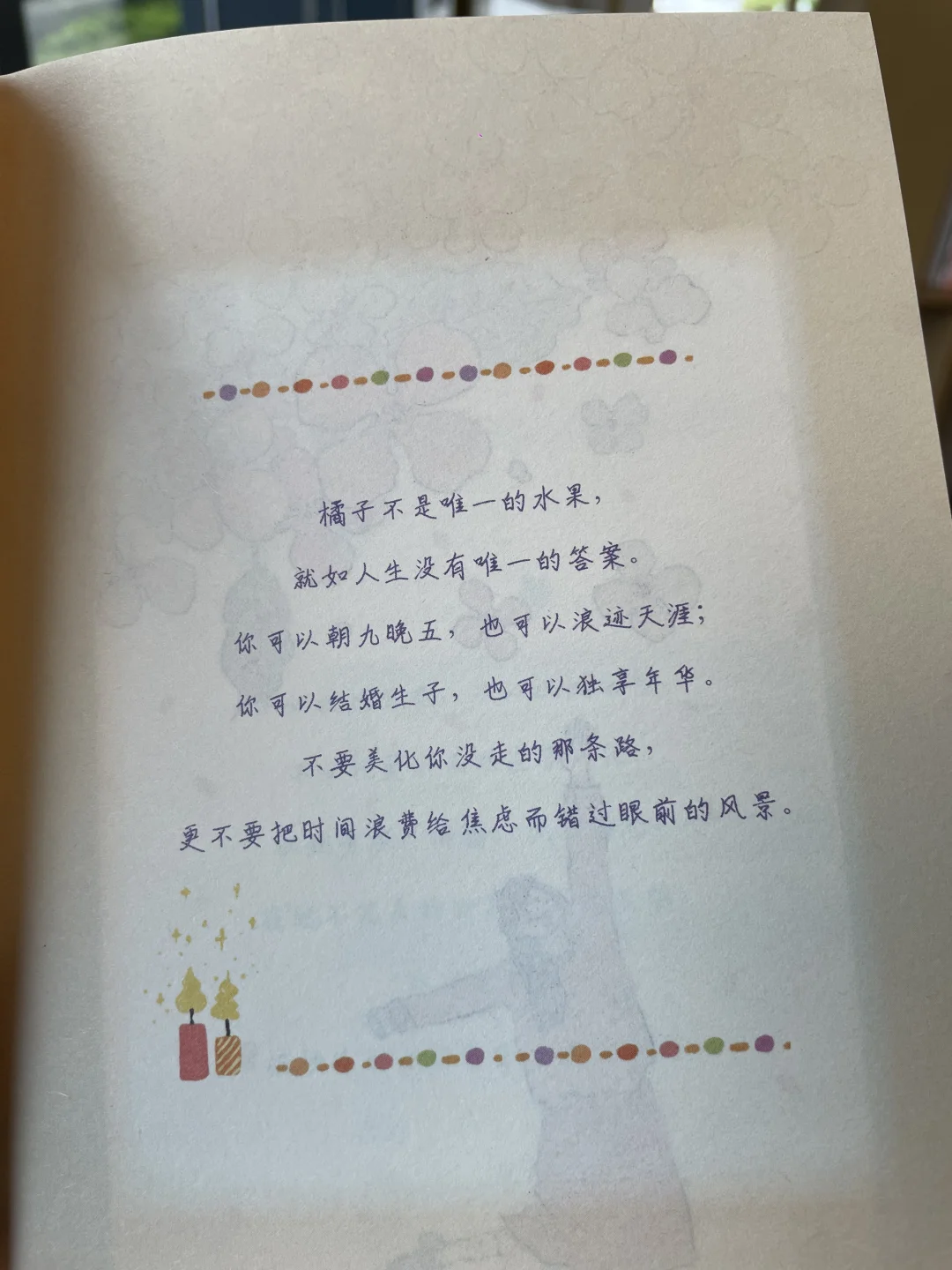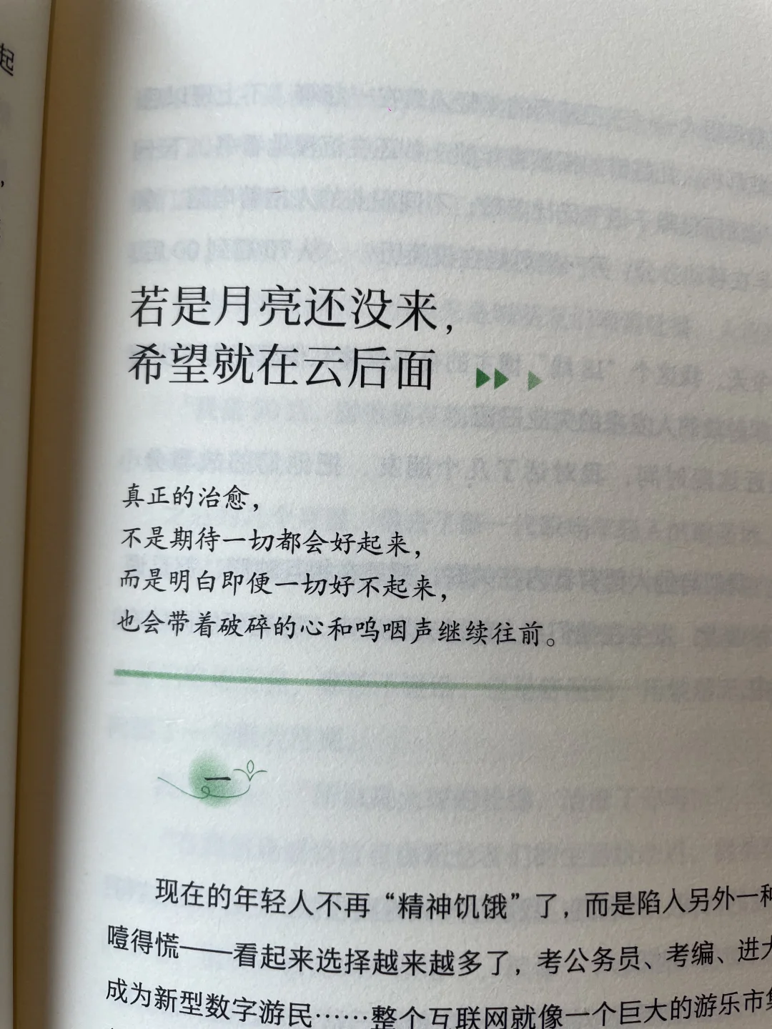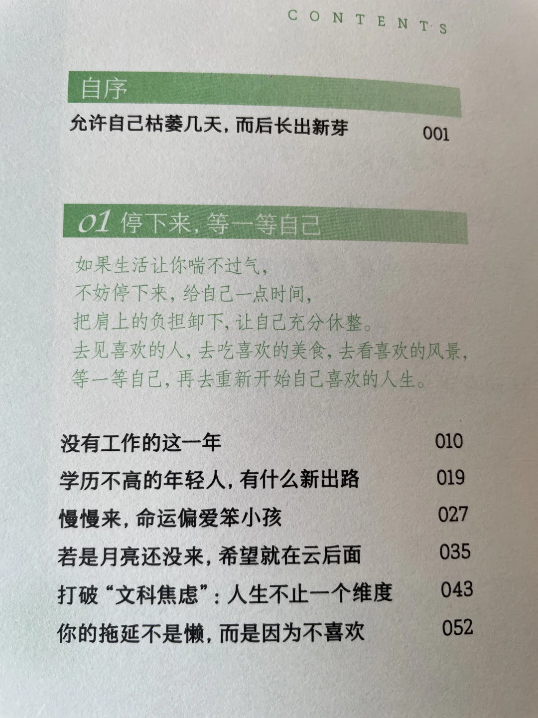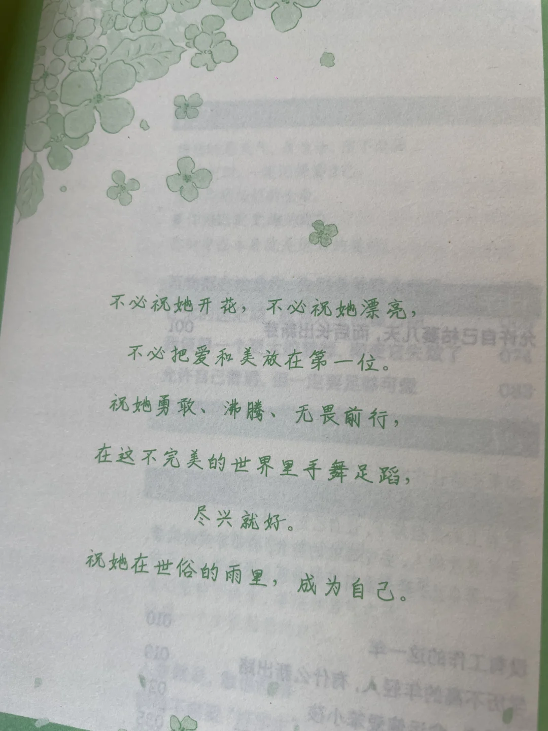 📗书名:《允许自己枯萎几天,而后长出新芽》 ✏️作者:闫晓雨 · 🌹我们可以是玫瑰 🌼也可以是雏菊 🌵还可以是带刺的仙人掌和快乐的狗尾巴草 🌸开不开花,我都是我 —— · 🏃在这个快节奏的时代,我们似乎习惯了奔跑,习惯了追逐,习惯了把自己绷成一根紧弦,这本书的书名就像一剂温柔的良药,提醒我们:累了,就允许自己枯萎几天 · 🟣它不是一本传统意义上的励志书,没有激昂的口号,也没有成功学的套路。相反,它像一位知心朋友,静静地倾听你的疲惫,理解你的焦虑,告诉你:枯萎不是失败,而是生命必经的周期 — · 🟡作者用细腻的笔触,描绘了现代人内心的挣扎:工作的压力、生活的琐碎、人际关系的复杂……这些无形的重担压得我们喘不过气来。而书中提出的“枯萎”,不是消极的逃避,而是积极的自我修复。就像自然界中的植物,经历枯萎才能迎来新生 · —— 🌴如果把我们比喻成植物,枯萎就好像人类的“躺平”,在大众定义中这是消极的、低能量的,这让我想到“文学界的摆烂王”卡夫卡说的那句:“我最擅长的事,就是一蹶不振” · 😃你瞧,原来摆烂似乎也没那么无聊嘛,太符合现在年轻人的精神状态了,焦虑的时候看到这句话真的很减压,那我们何尝不可放下手机,远离社交网络,给自己一段独处的时光;去做一些看似无用的事呢! · —— 🟣比如发呆、看云、听雨;允许自己哭泣,允许自己脆弱,接纳自己的不完美……这些看似简单的举动,却能让我们从繁忙的生活中抽离出来,重新找回内心的平静 · 🌷 “枯萎”之后,便是“新生”,书中鼓励我们,在充分休息之后,重新出发,去追寻自己的梦想,去绽放属于自己的光芒。这种绽放,不是外界的期待,而是发自内心的渴望 · 🐎人生不是一场永不停歇的马拉松,而是一场有起有落的旅程。累了,就允许自己枯萎几天,积蓄力量,然后,以更饱满的姿态,迎接生命的绽放