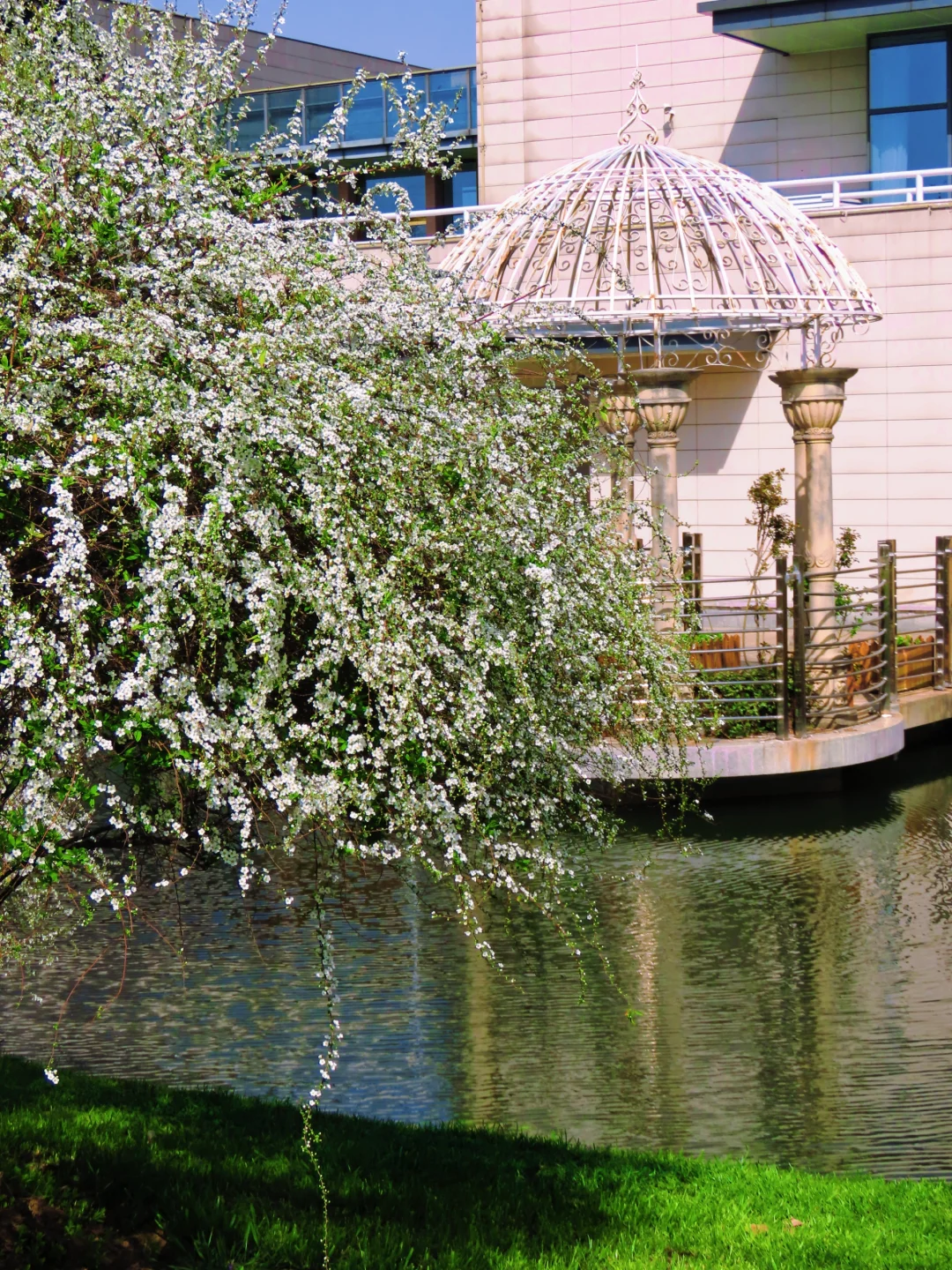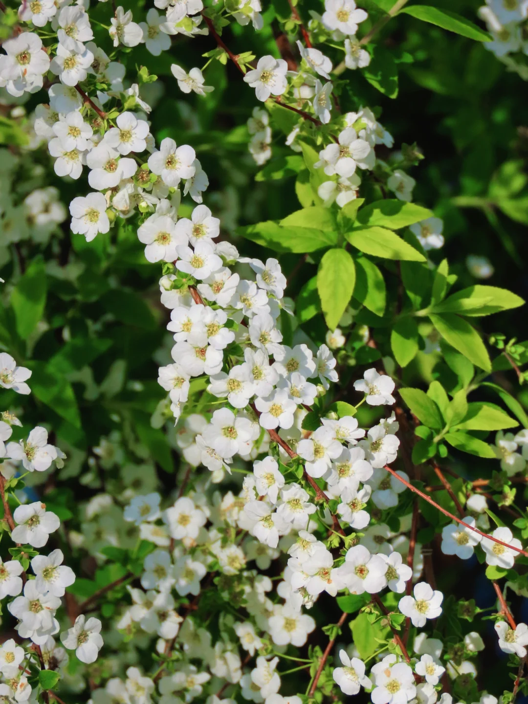 雪柳也称喷雪花,雪白的花朵宛如花瀑布,远看仿佛天边的云朵,美极了