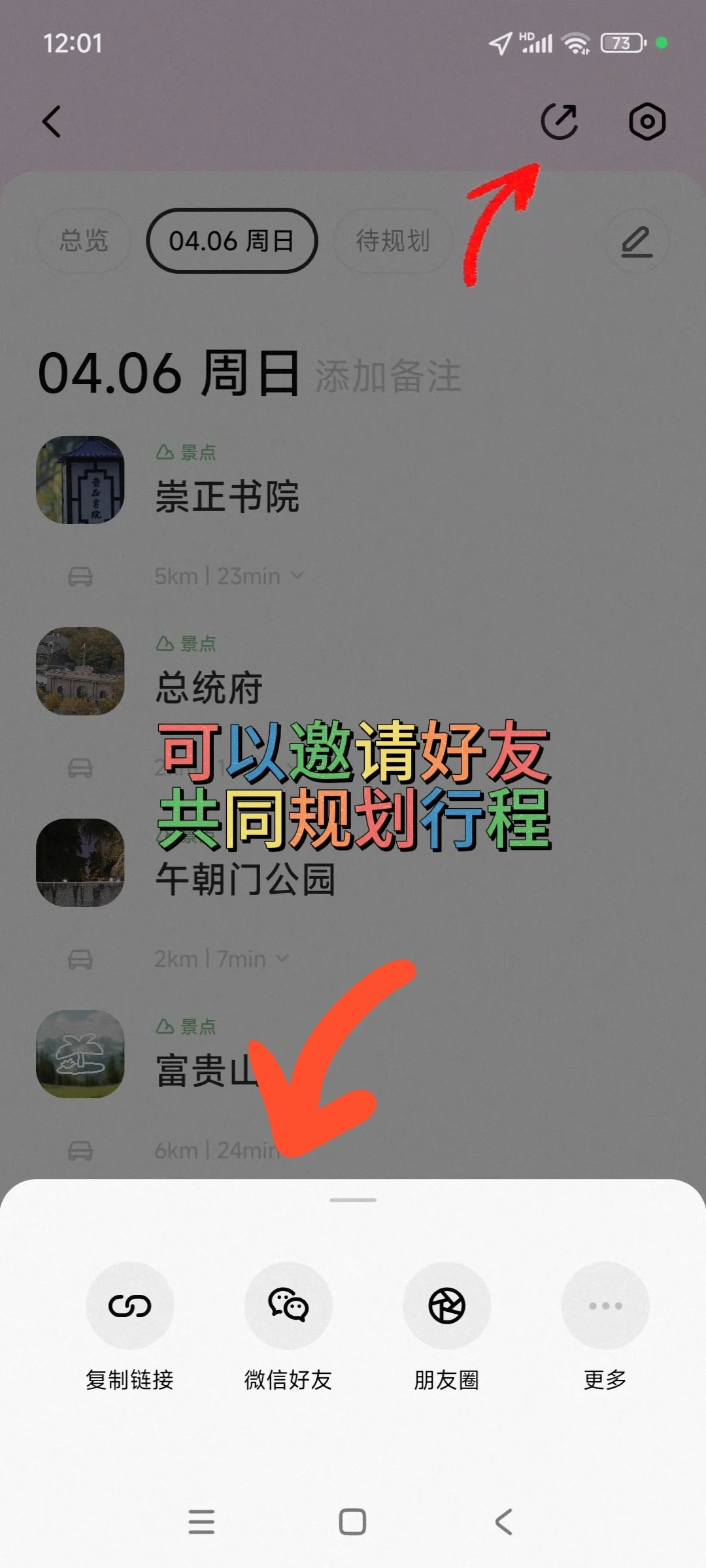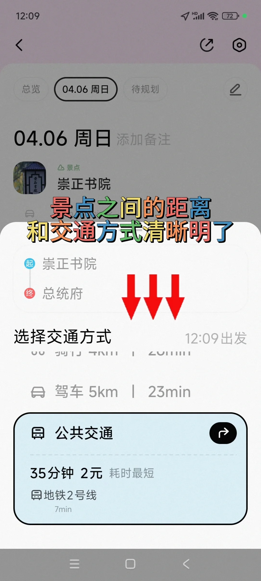 景点之间的距离、交通方式和用时清晰明了,还可以邀请旅游搭子一起编辑,共同规划愉快的旅行