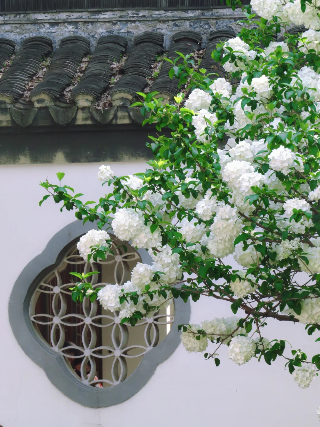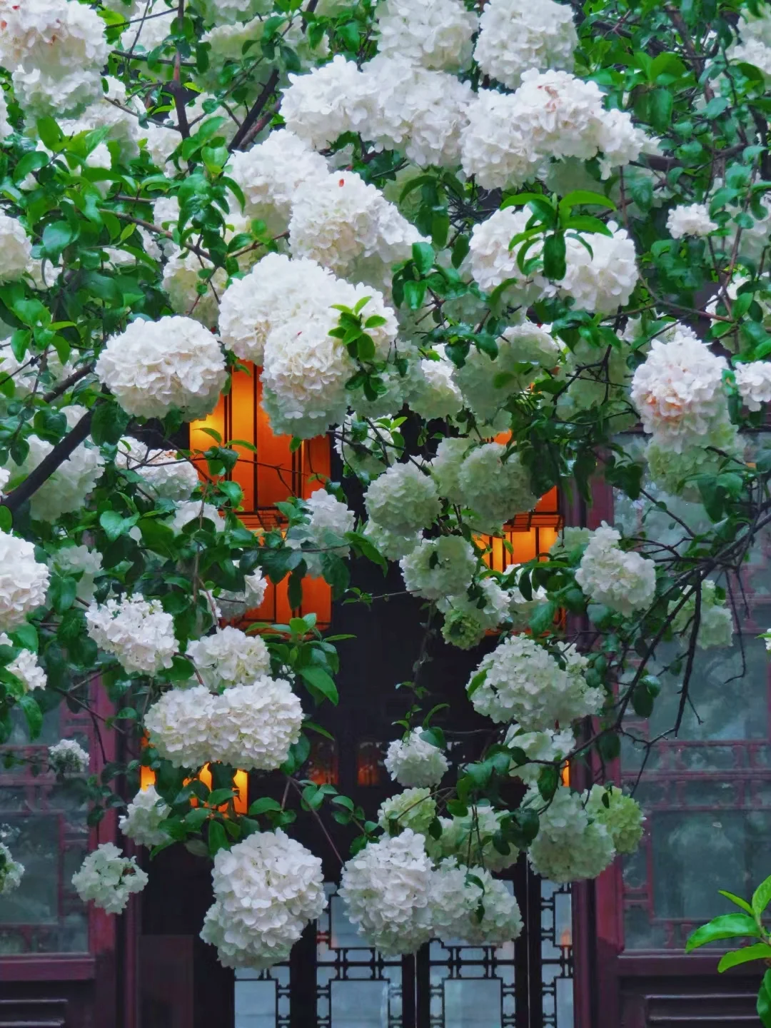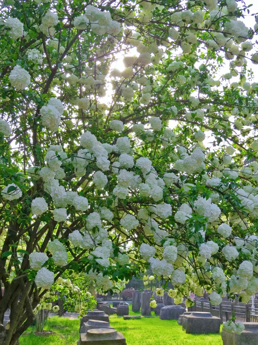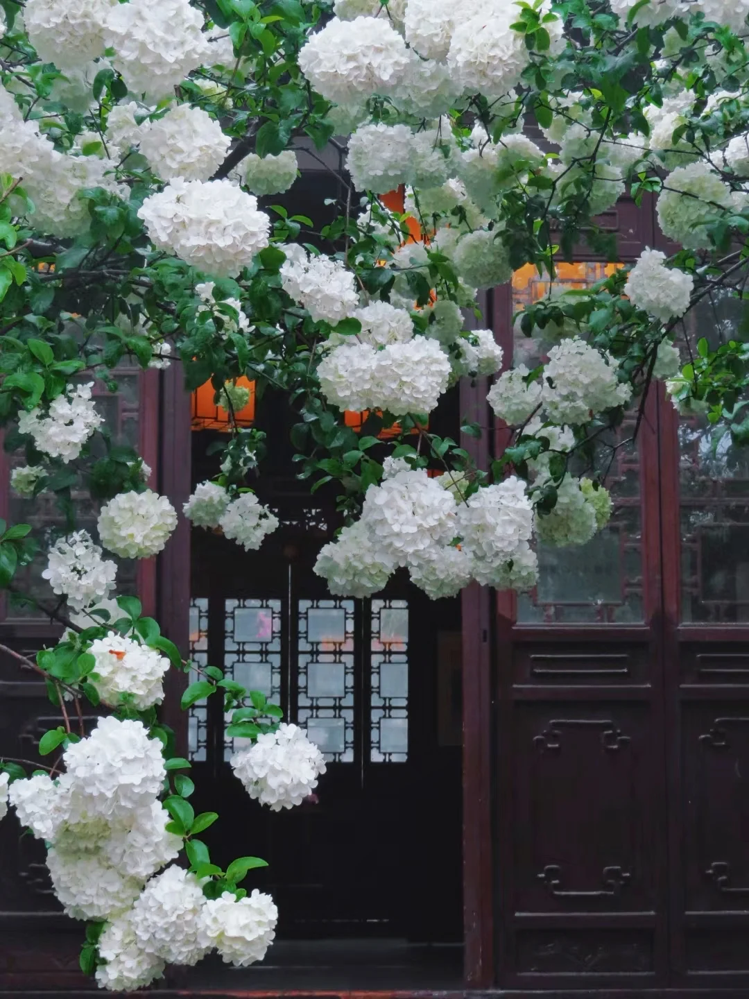 两棵绣球树,花朵浓密像瀑布,出片,但院子小人多,所以拍人像要找角度