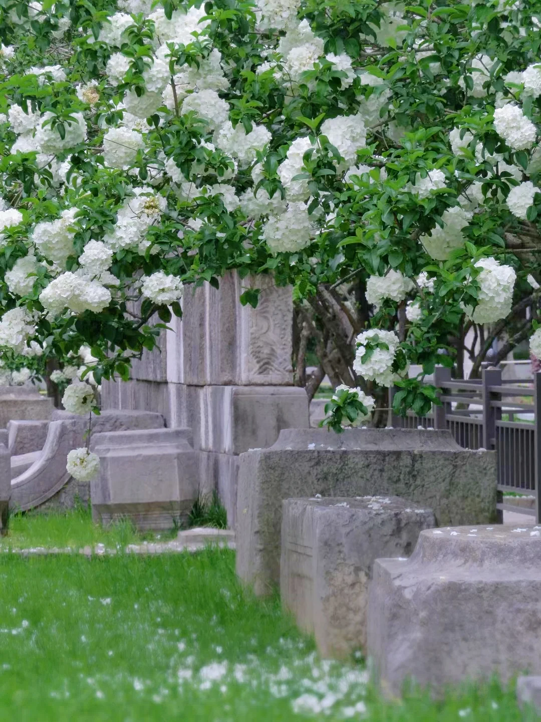 600年的断壁残垣和白色绣球花有种莫名的宿命感