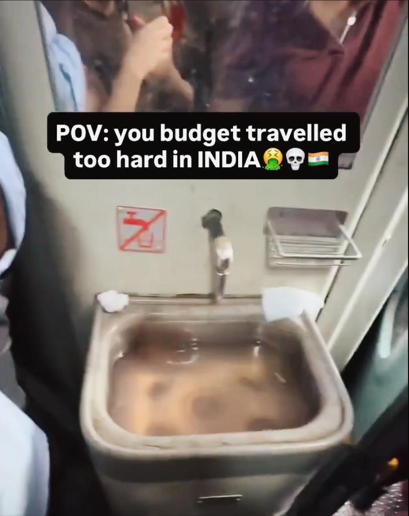 何必呢?几名英国背包客穷游印度,承认印度就不适合穷游:实在太臭了。 他们没有预定到座位,只能去卧铺车厢里和其他人一样站着。“所有的东西都在错误的位置上”——他们旁边刚好是洗手间。洗手池里的水看起来经历了几个世纪…… 更别提视频女子身后的印度男子,疯狂在她身后磨蹭。