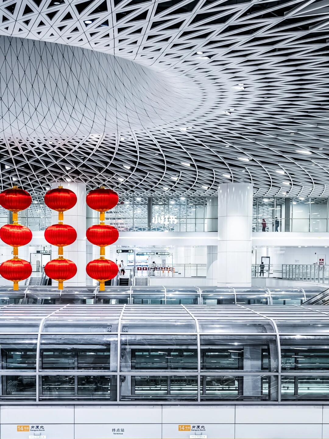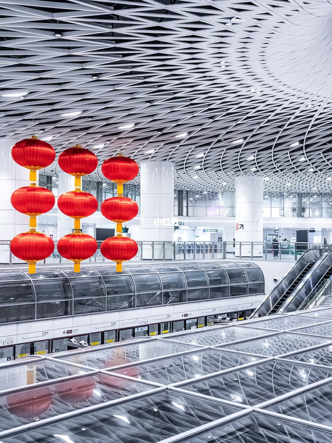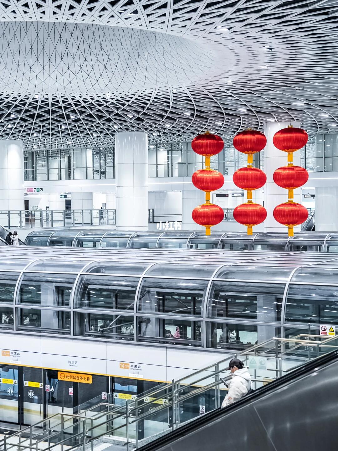 发现岗厦北地铁站已经装点上红彤彤的大灯笼🏮