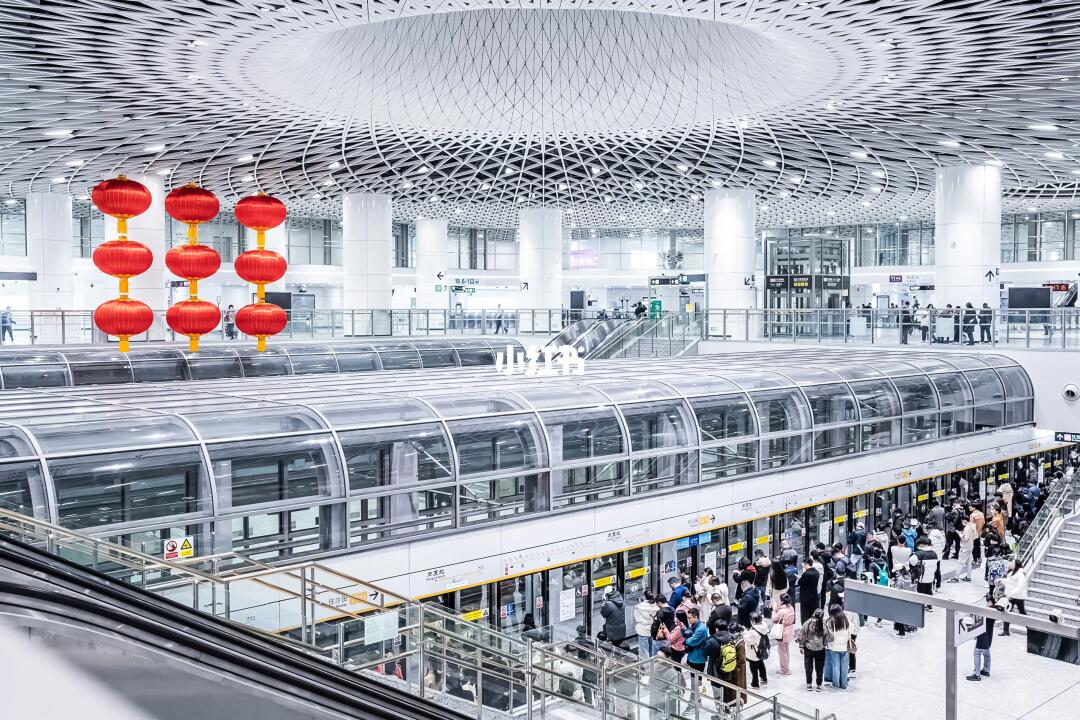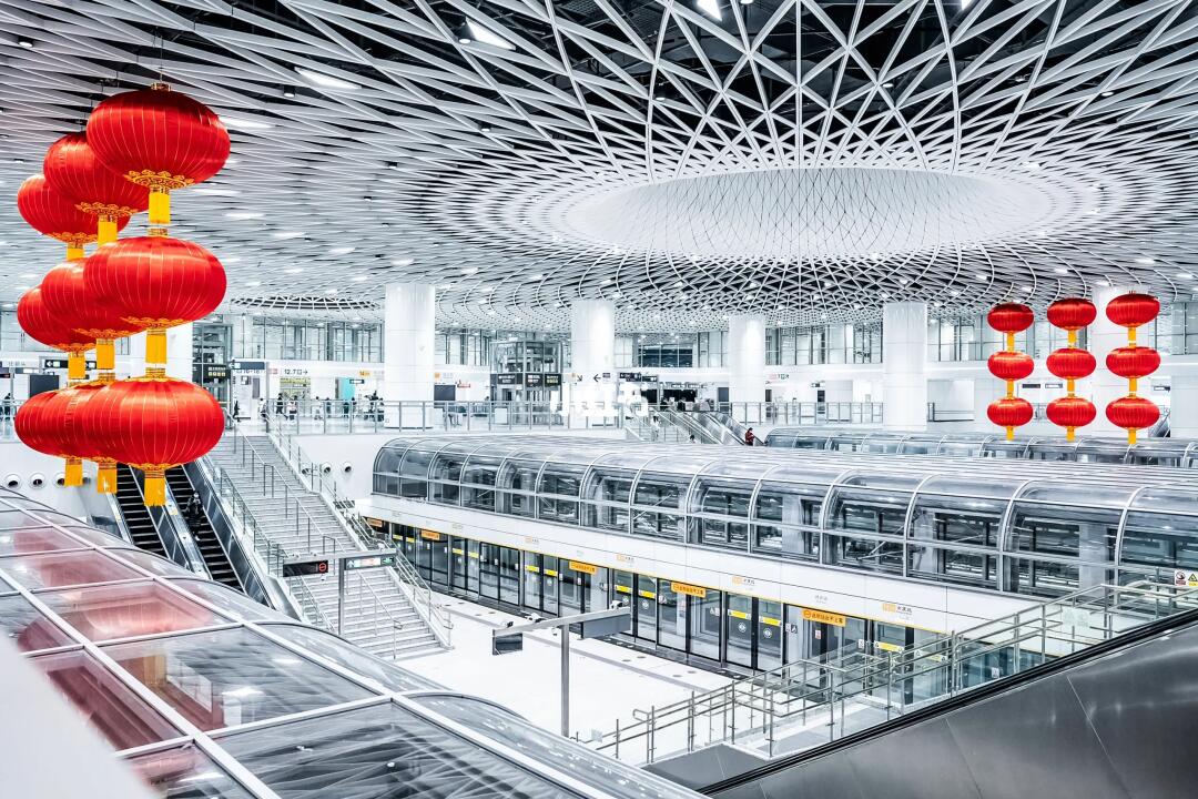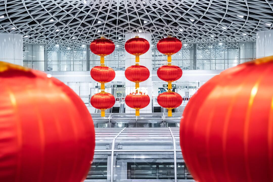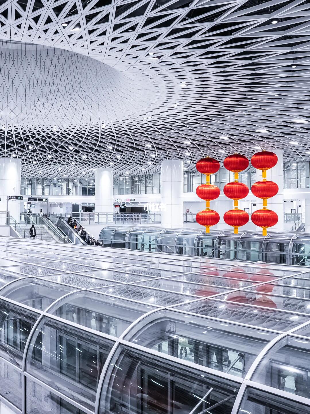 发现岗厦北地铁站已经装点上红彤彤的大灯笼🏮