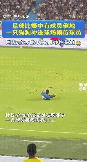 球刚踢到一半,狗子冲进场,看见人躺下,它也躺。 滚两圈,还翻个身,比演员还懂演戏。 裁判吹停,工作人员追它,它不跑,就赖着不起来。 全场笑到拍大腿,连解说都憋不住笑出声。 这哪是闯祸? 这是来抢C位的。 人演伤,它演真伤,谁看谁乐。 球场不是动物园,但有时候,最真实的表演, 是没剧本的那只狗。