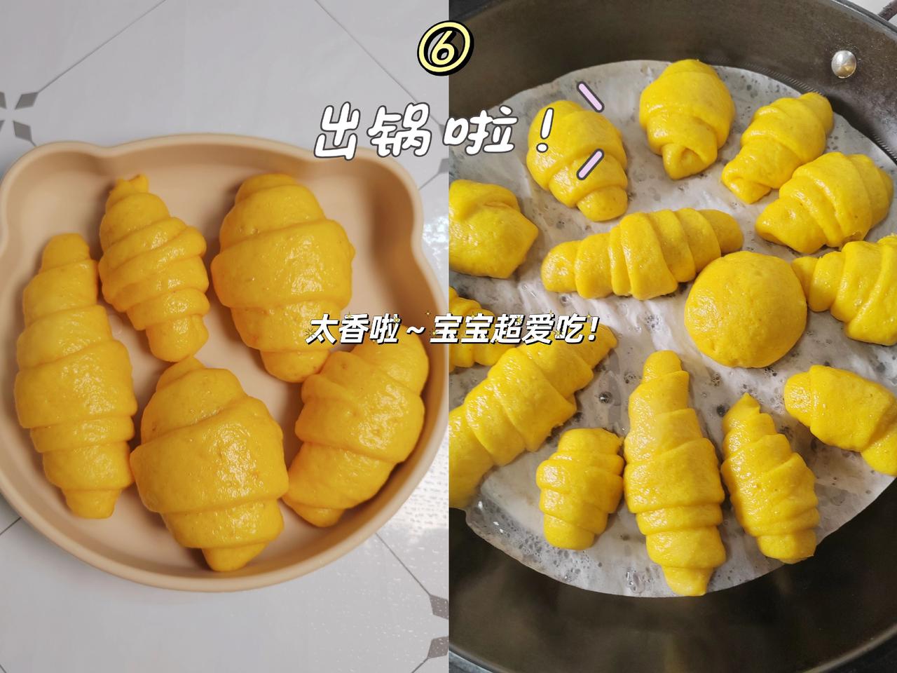 南瓜牛角形小馒头,蓬松暄软宝宝超爱吃!不加一滴水的南瓜馒头,保姆级教程,一次就成功!辅食 南瓜馒头 辅食教程 宝宝辅食