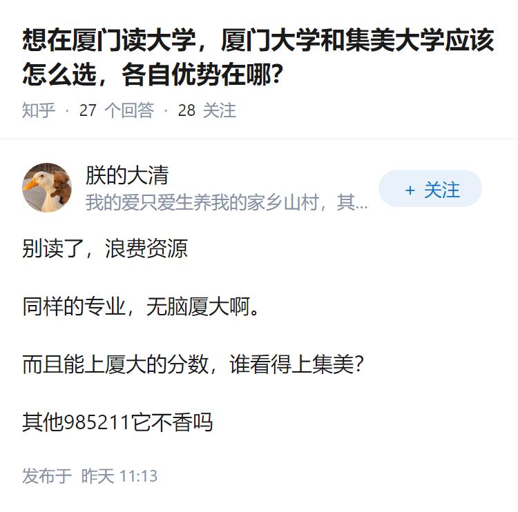 想在厦门读大学,厦门大学和集美大学应该怎么选,各自优势在哪?