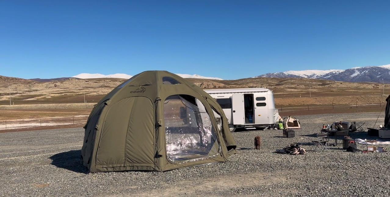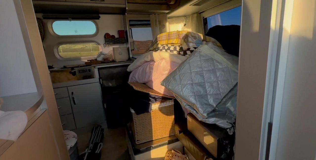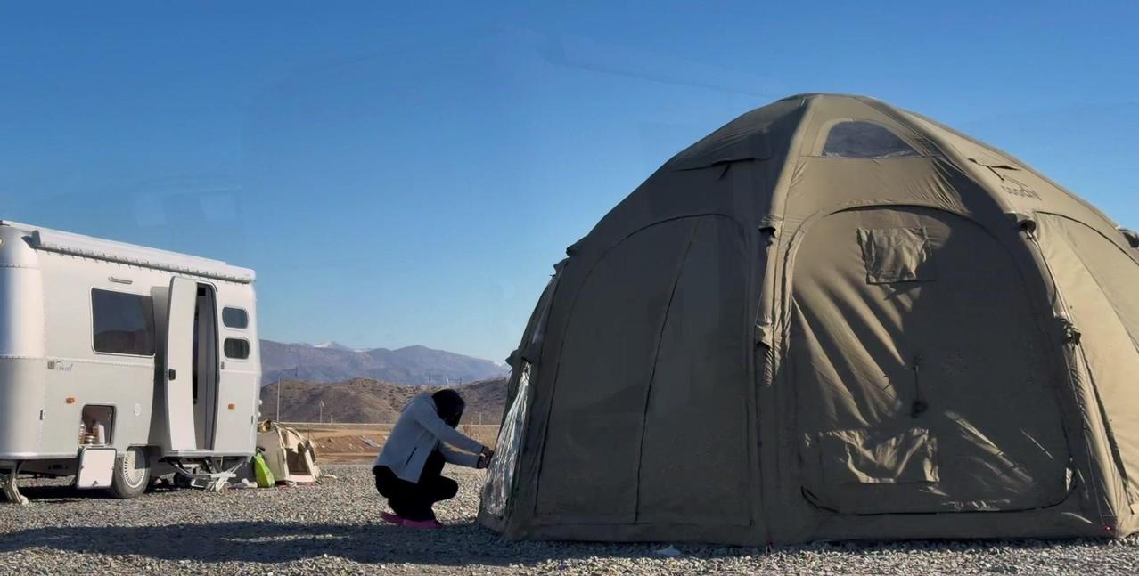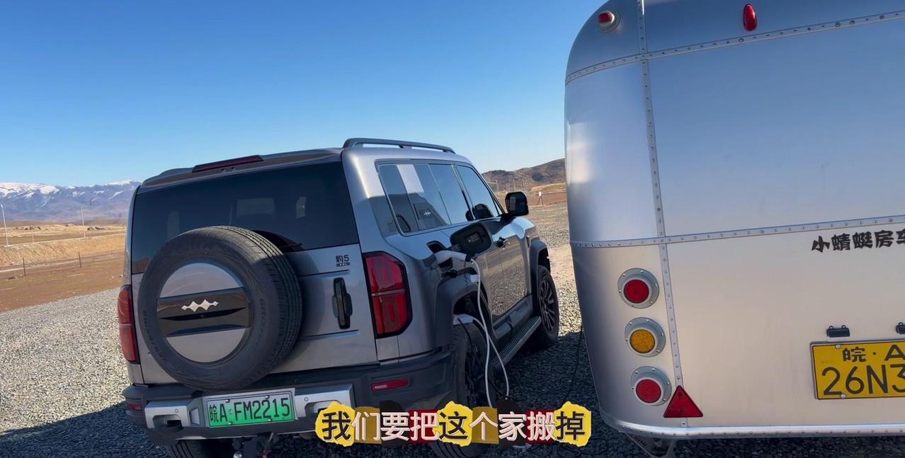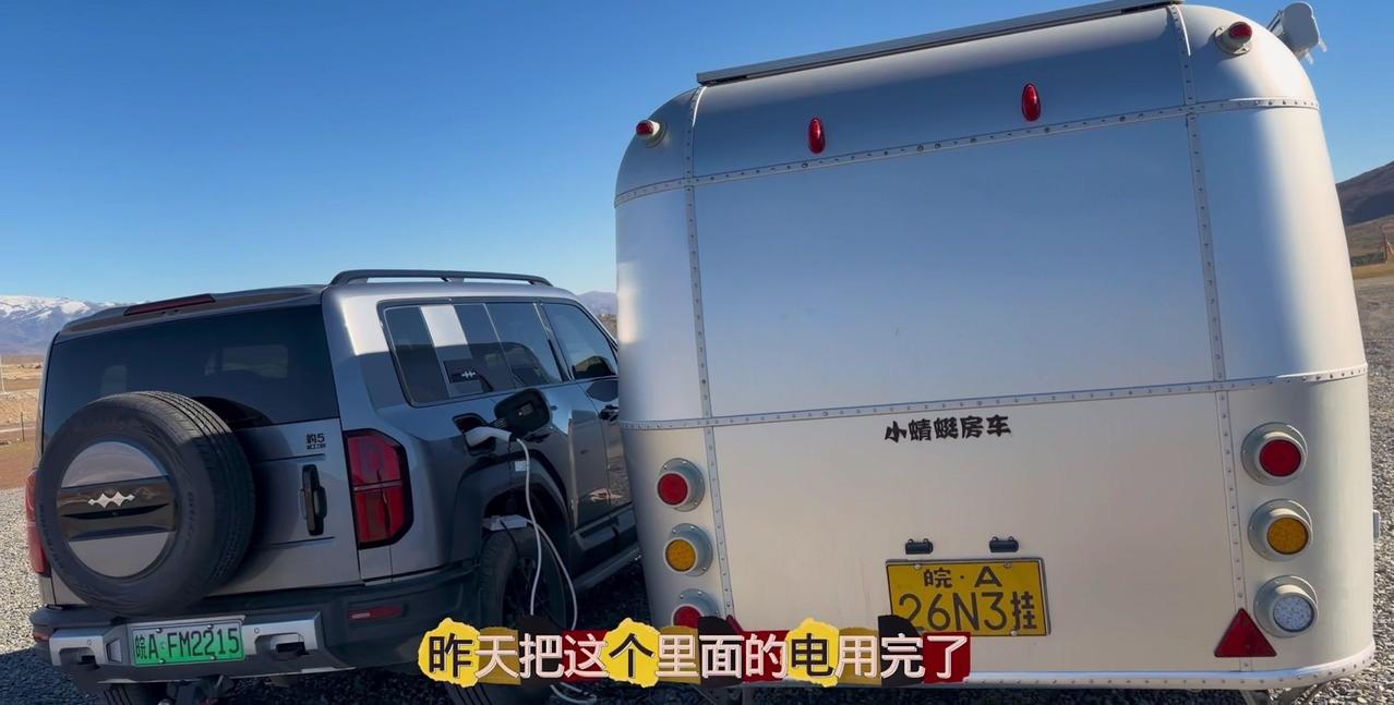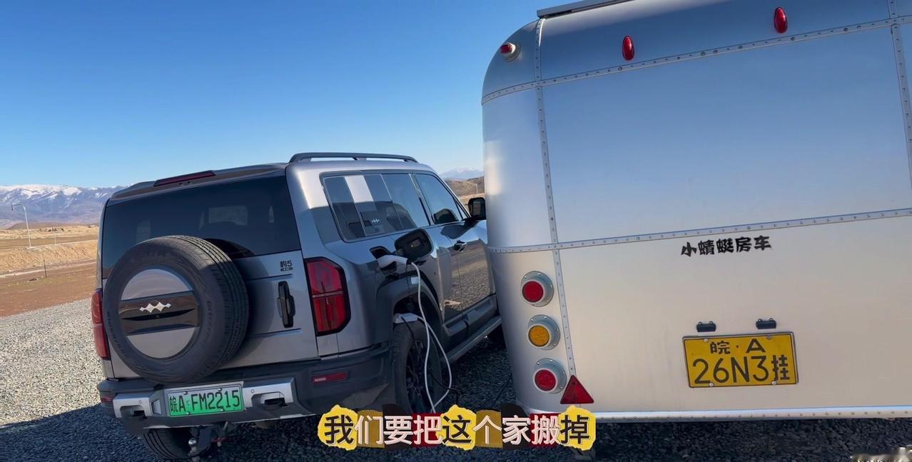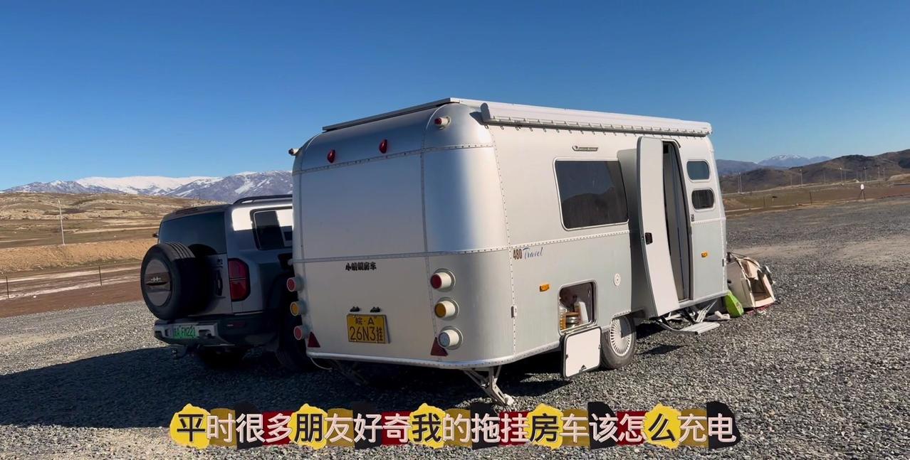 一个本地人的警告,让我在阿勒泰的房车美梦24小时内破碎。这个营地是我来新疆后最满意的,每天推窗见雪山日出,傍晚看日落,夜晚还有漫天星星。但老乡说下星期要下暴雪,雪深一米多,路会封死,补给成问题。 01听劝搬家 其实我这是第4次搬家了,希望这次是最后一次。收拾东西花了1个多小时,后备箱塞满砖头,车顶拉着板子,像个移动的小货车。 02房车充电 很多人好奇拖挂房车怎么充电,我车顶有1200瓦太阳能板,大晴天足够用。阴雨天或下雪天,就靠前车30度电供电,昨天电用完了,今天正在放电。 安全第一,主打一个听劝。