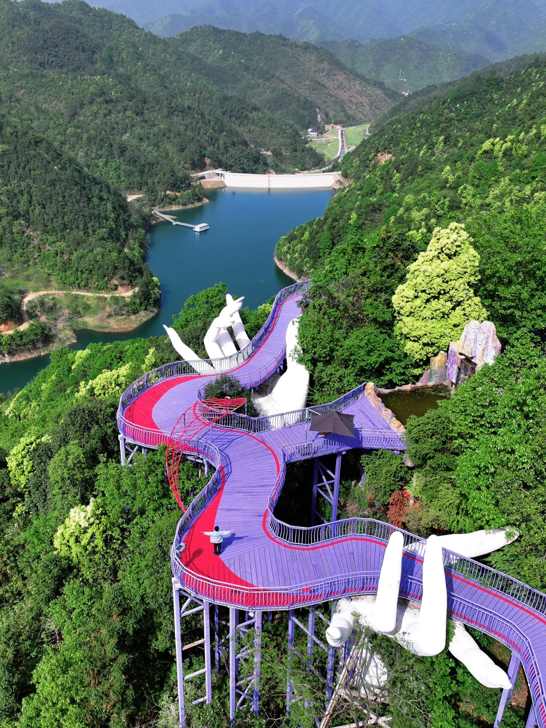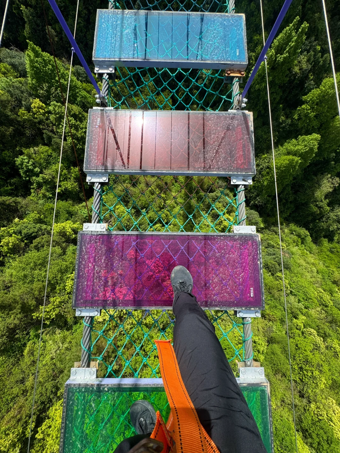 高空吊桥,脚下就是山谷,可谓是“步步惊心”镂空步道