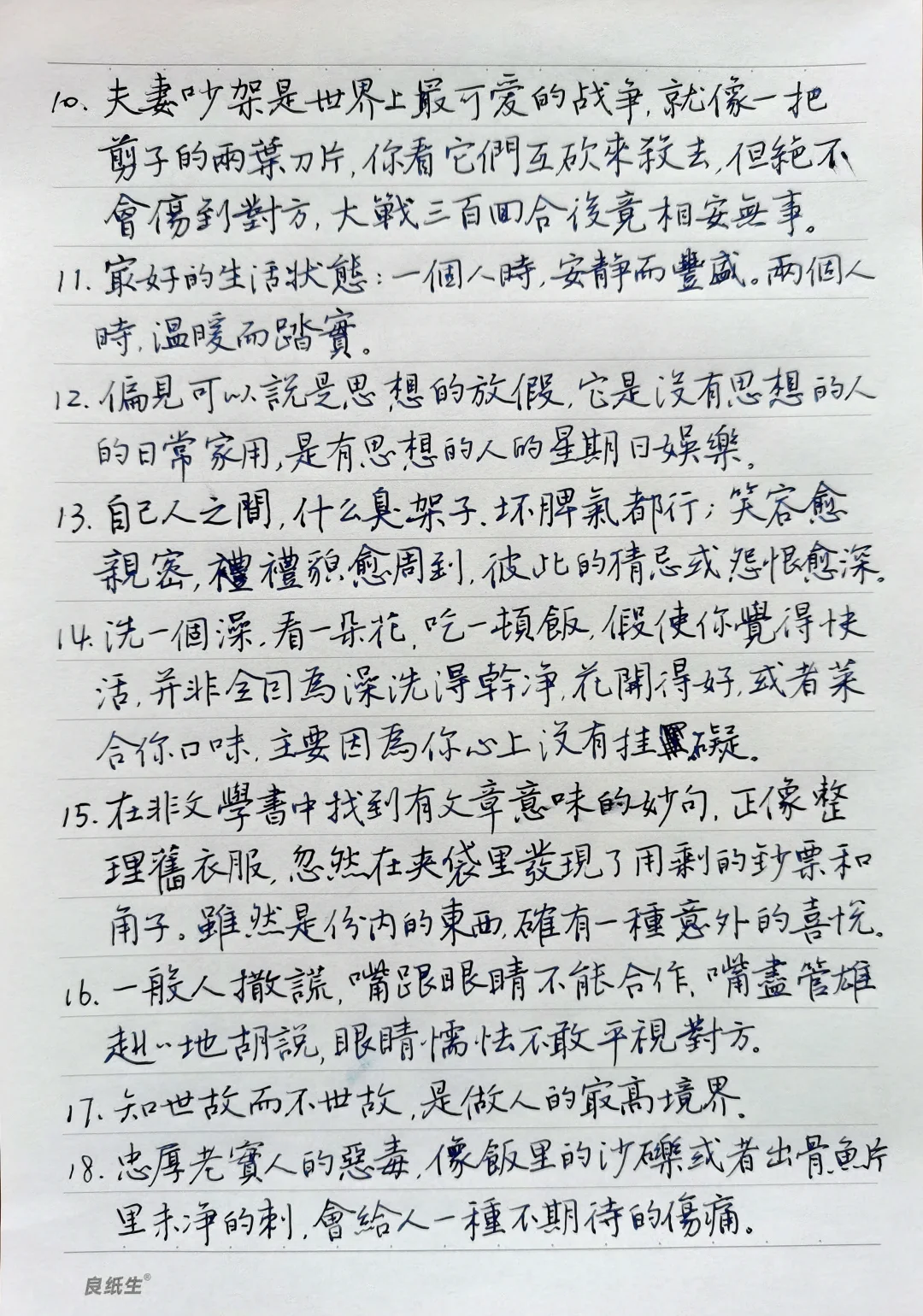 硬笔手抄《钱钟书经典语录三十则》