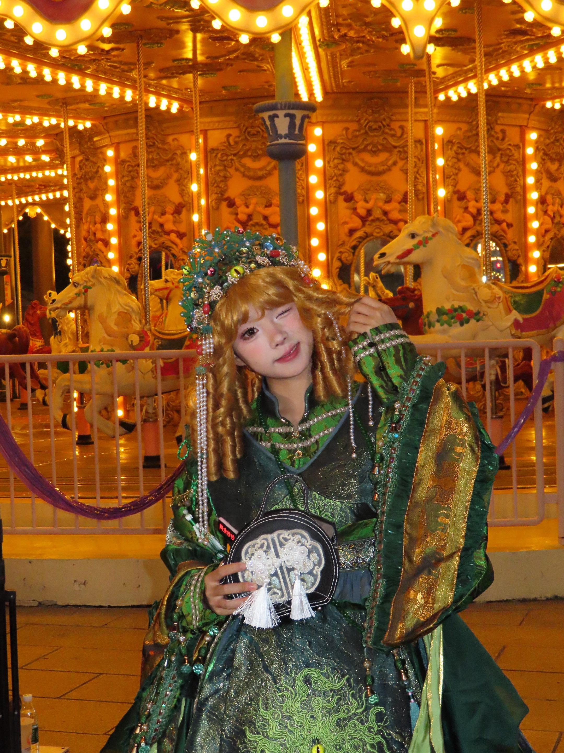 晚上走在街上,看见个少女,长得那叫一个好看。她脸上化着精致的淡妆,眼睛亮晶晶的。