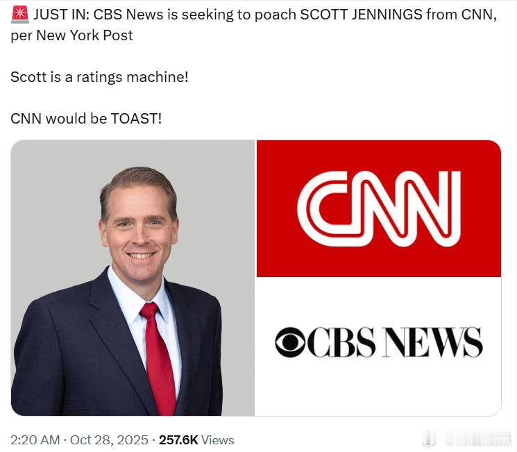 CBS新闻正试图挖角CNN的斯科特·詹宁斯。