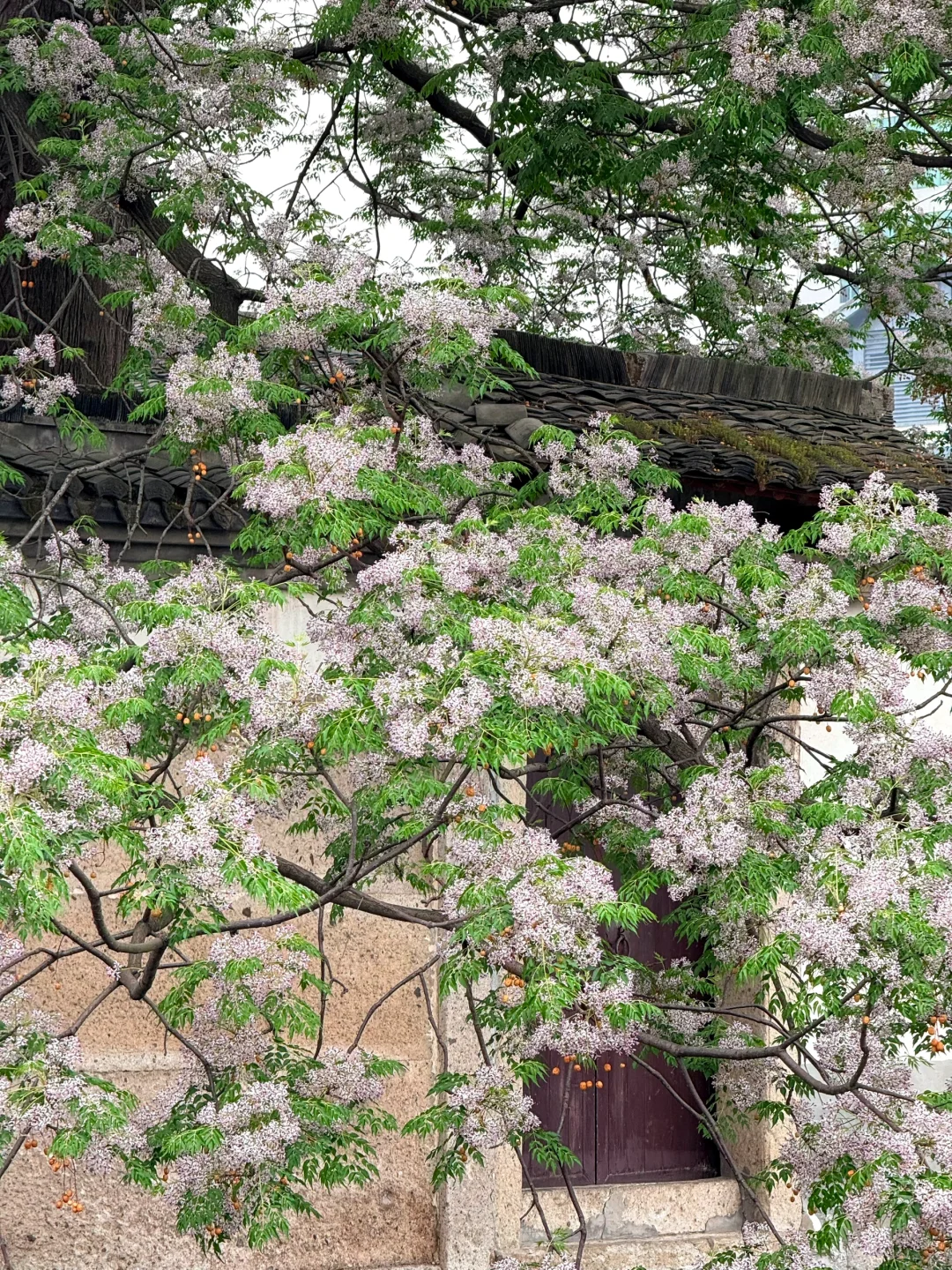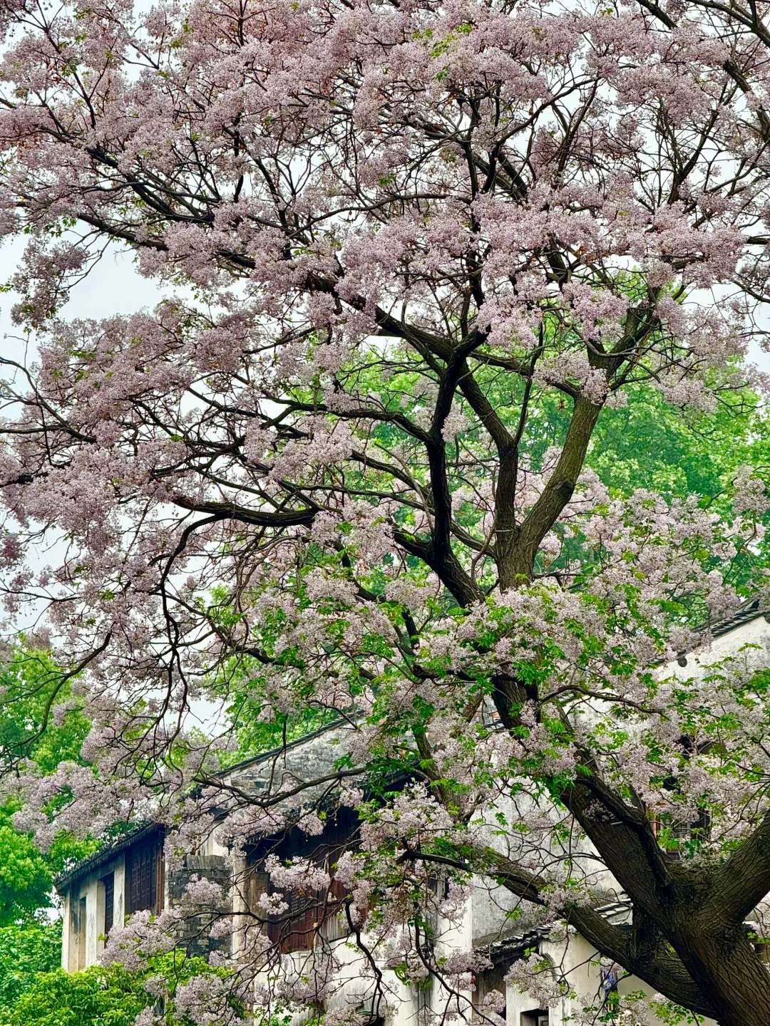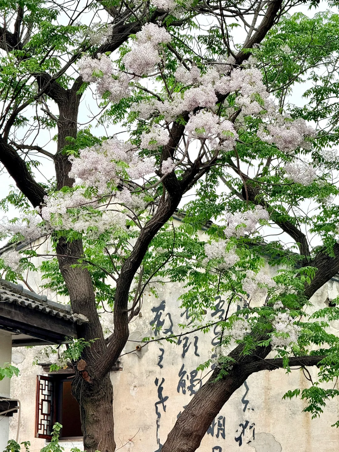 “一信楝花风,一年春事空。” 苦楝花被古人用来形容初夏 白中透紫的花瓣,远观如絮,近看朵朵淡紫小花🌸 它不与一众春花争时,幽静地绽放🌸 一场雨后🌧️花瓣如紫雪般飘落,正式宣布入夏🌞 - 如果你恰好春末夏初到绍兴🥳 那么古城里的这几棵楝花树不可错过❗ - 📍仓桥直街 📍书圣故里 📍广宁桥 📍西小路 - 📆: 2025.4.22 📱: iPhone16p 最近几天楝花已经盛开,可惜天气一般😔 -