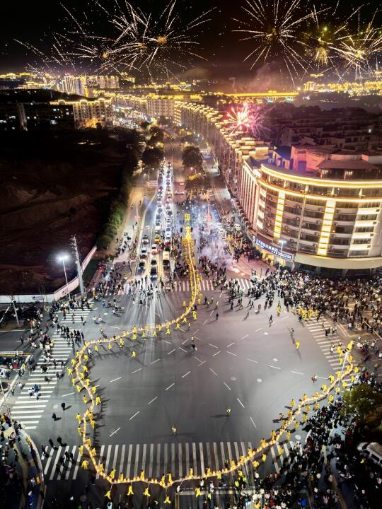 龙灯所到之处,家家户户燃放鞭炮烟花不绝耳🧨