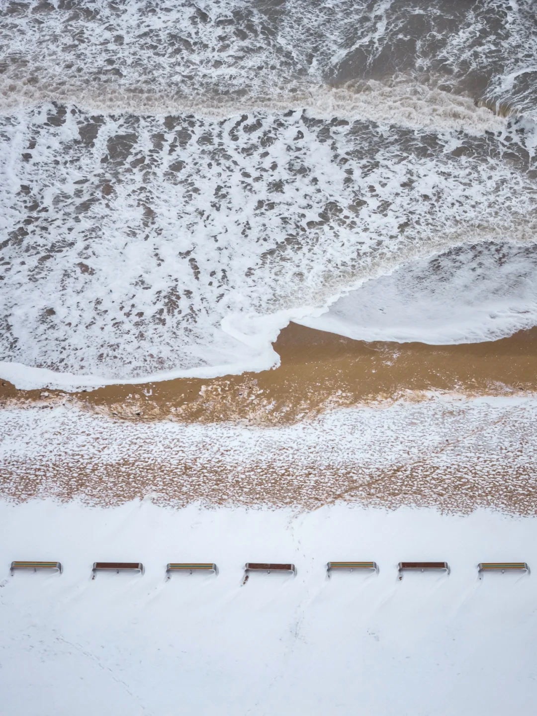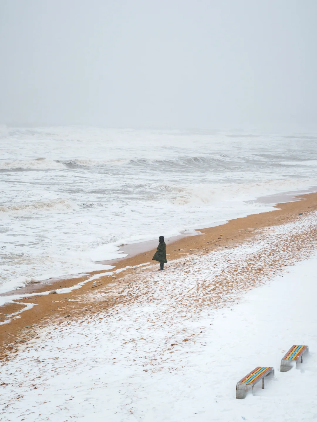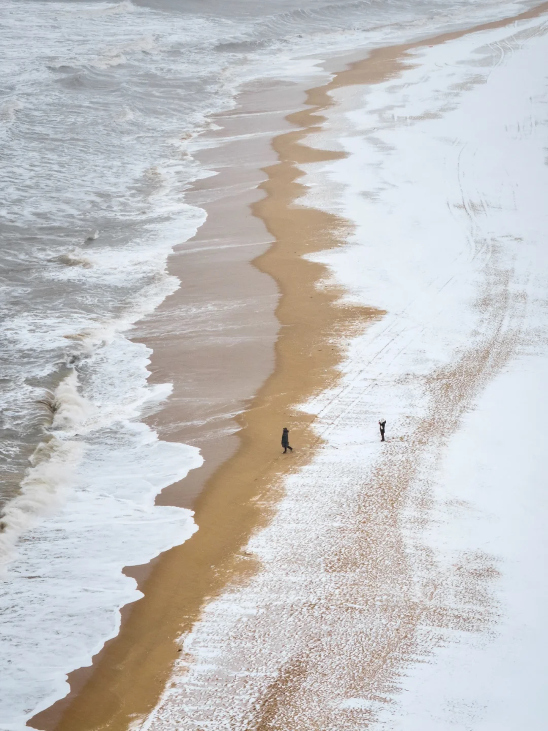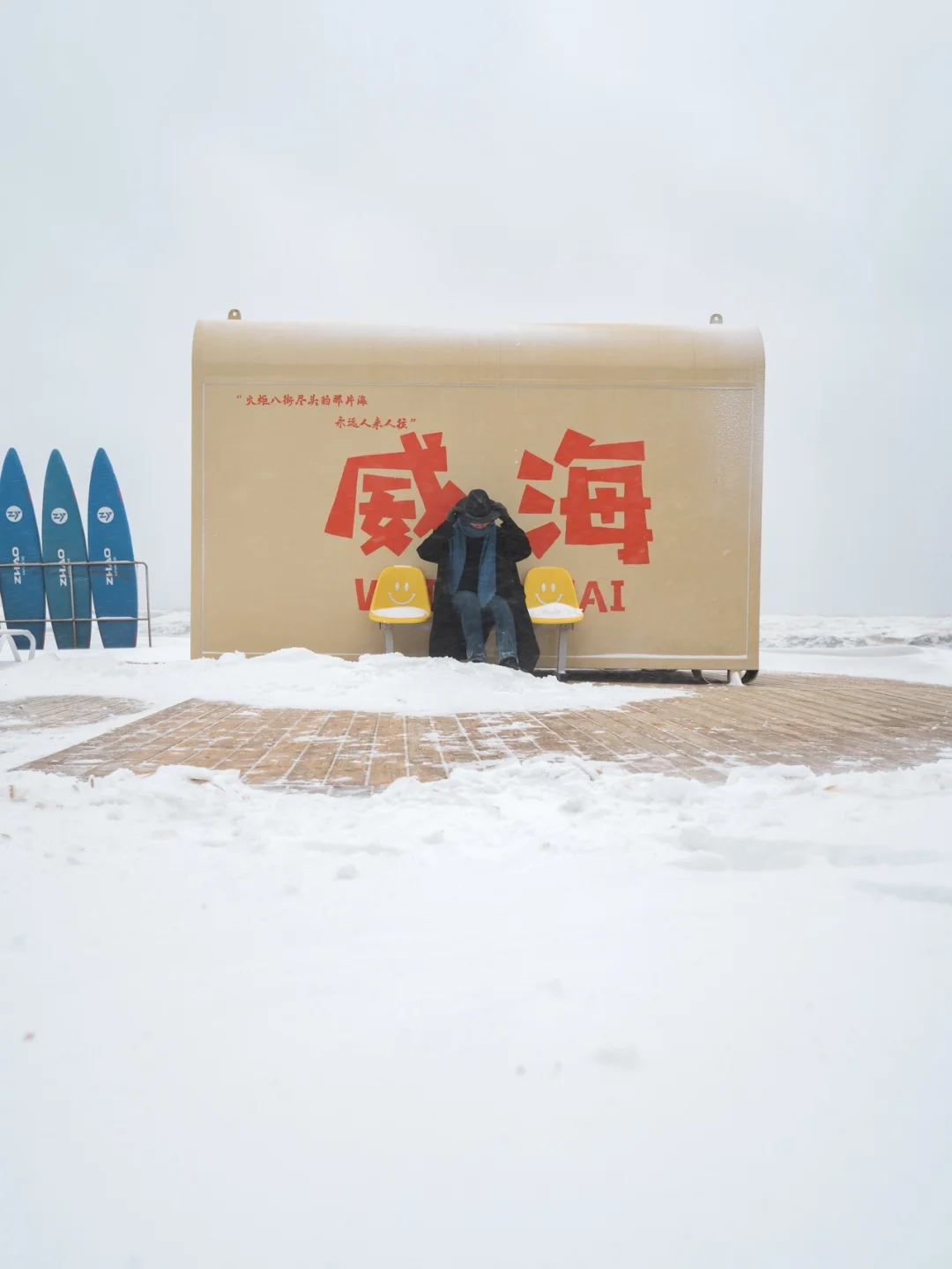 凌晨的火炬八街 没有白天络绎不绝的游客 只有被茫茫白雪覆盖的安静街道 从火炬八街一路走到海边沙滩 下雪的城市果然会更浪漫一些 -