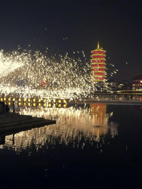 ❼夜晚在📍南岸水秀广场,打铁花🎇火壶🔥水秀⛲烟花🎆依次上演