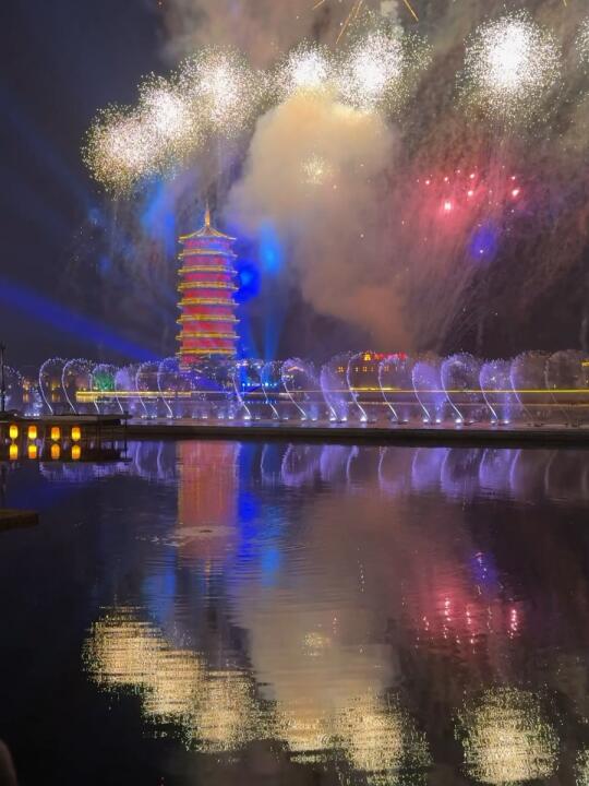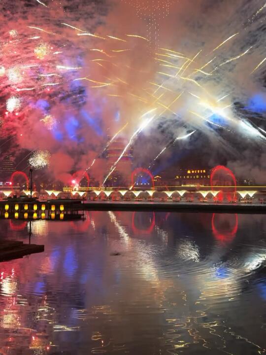 和王星越、卢昱晓、吴宣仪、刘些宁等主创明星一起看了整场绝美的铁花烟花水秀表演🥳太快乐了!