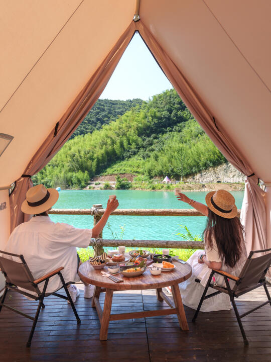 ❺玩累了可以在室内餐厅或者湖边帐篷用餐休息