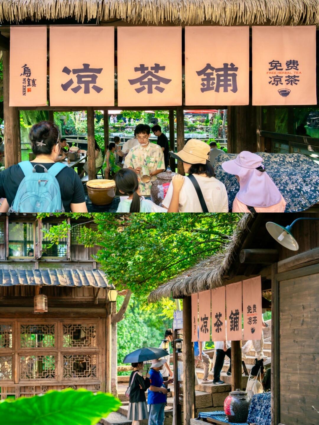 路过凉茶铺,可以随时领一杯凉茶或绿豆汤解暑降温,是免🆓费的