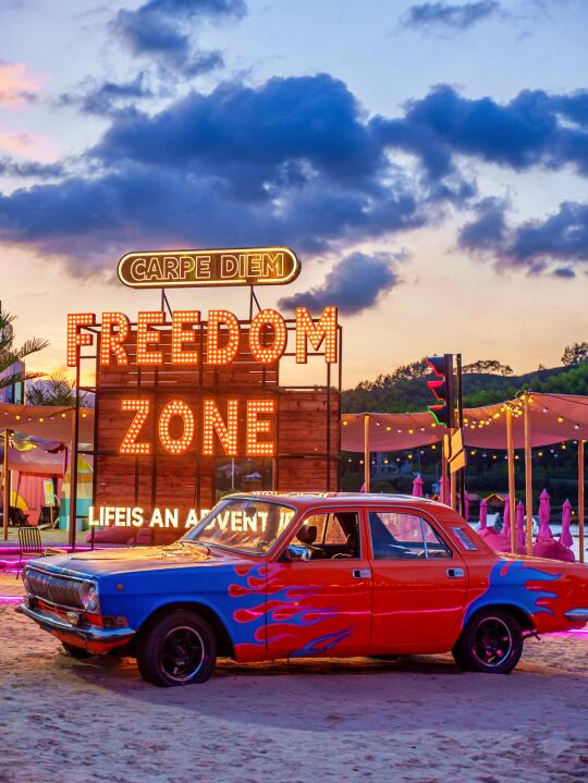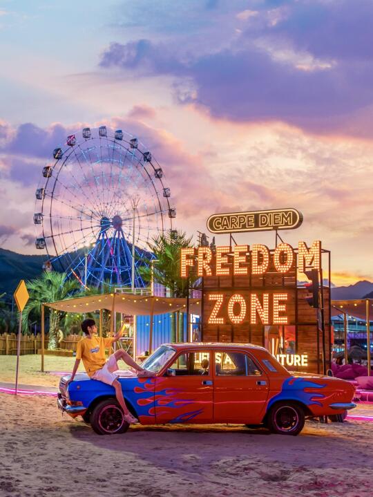 ✔️复古美式老爷车 、荒漠公路、加油站站牌、瞭望塔、热带树林等场景都很适合拍照📸