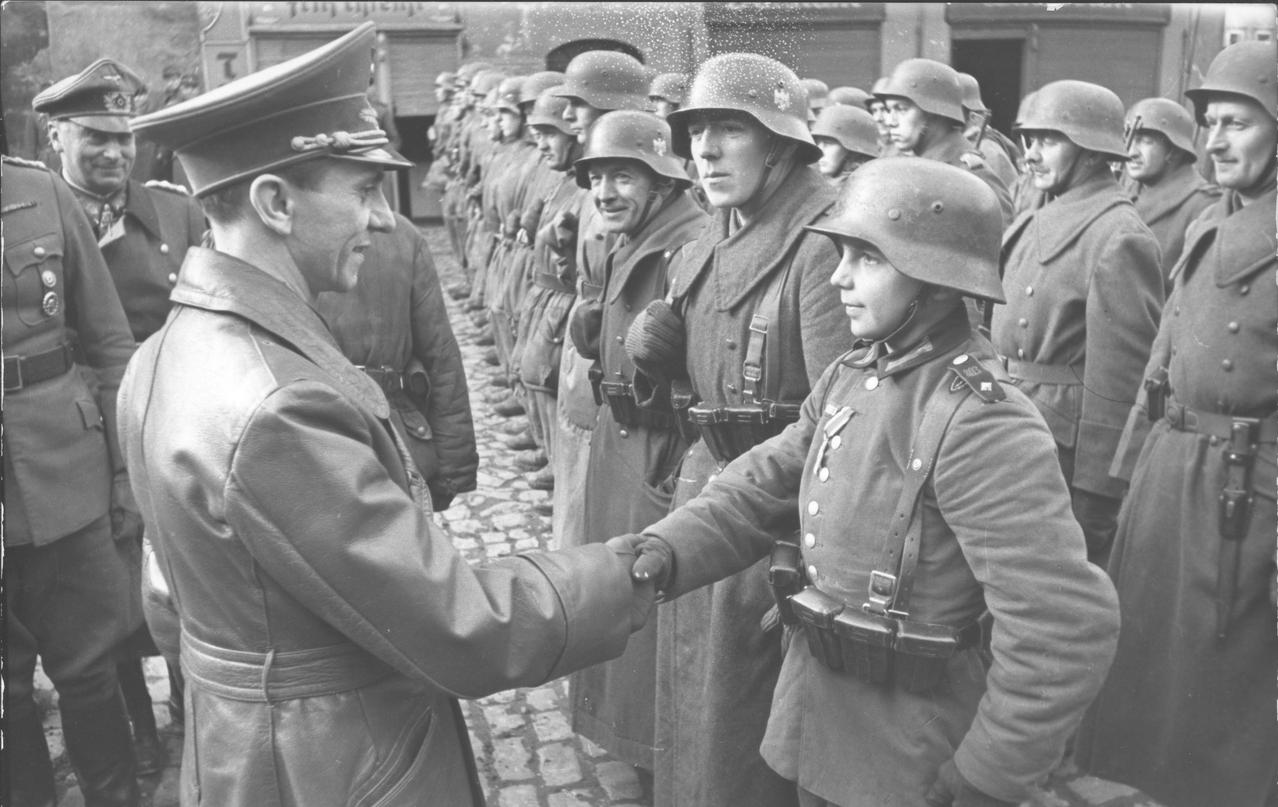 穷途末路了——1945年3月9日,德国,西里西亚,劳班市。约瑟夫·戈培尔在向16岁士兵威廉·许布纳授予二级铁十字勋章。 二级铁十字勋章(参见图2)是普鲁士王国于1813年创立、第三帝国沿用的军事荣誉,授予表现英勇的士兵。 劳班战役是1945年3月德军在西里西亚地区发动的最后一次成功反击,暂时缓解了苏军对柏林方向的压力。 值得一提的是:劳班市后来割让给波兰,今天叫卢班市。德国人辛辛苦苦打了两次世界大战,结果领土越打越小了~