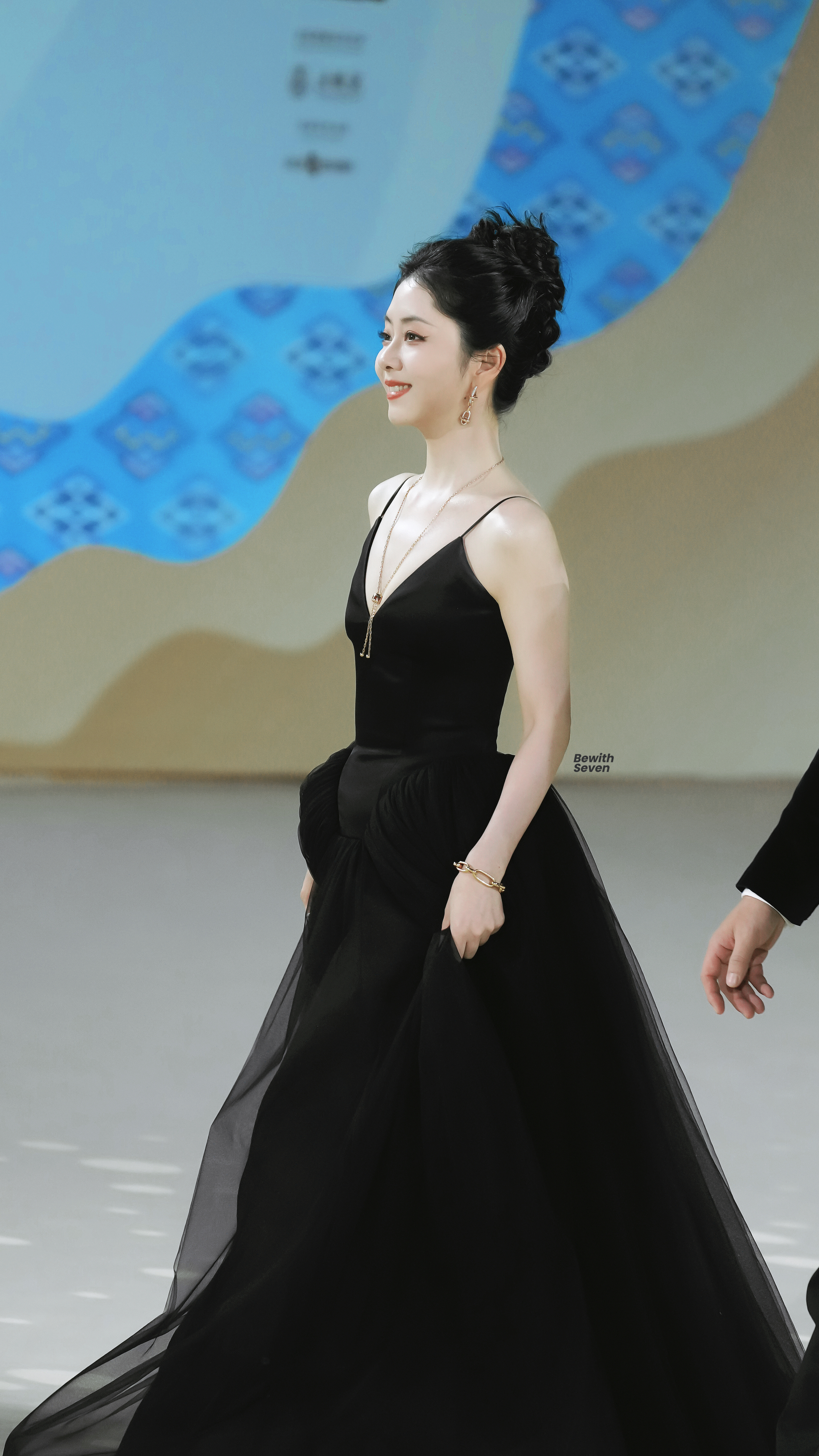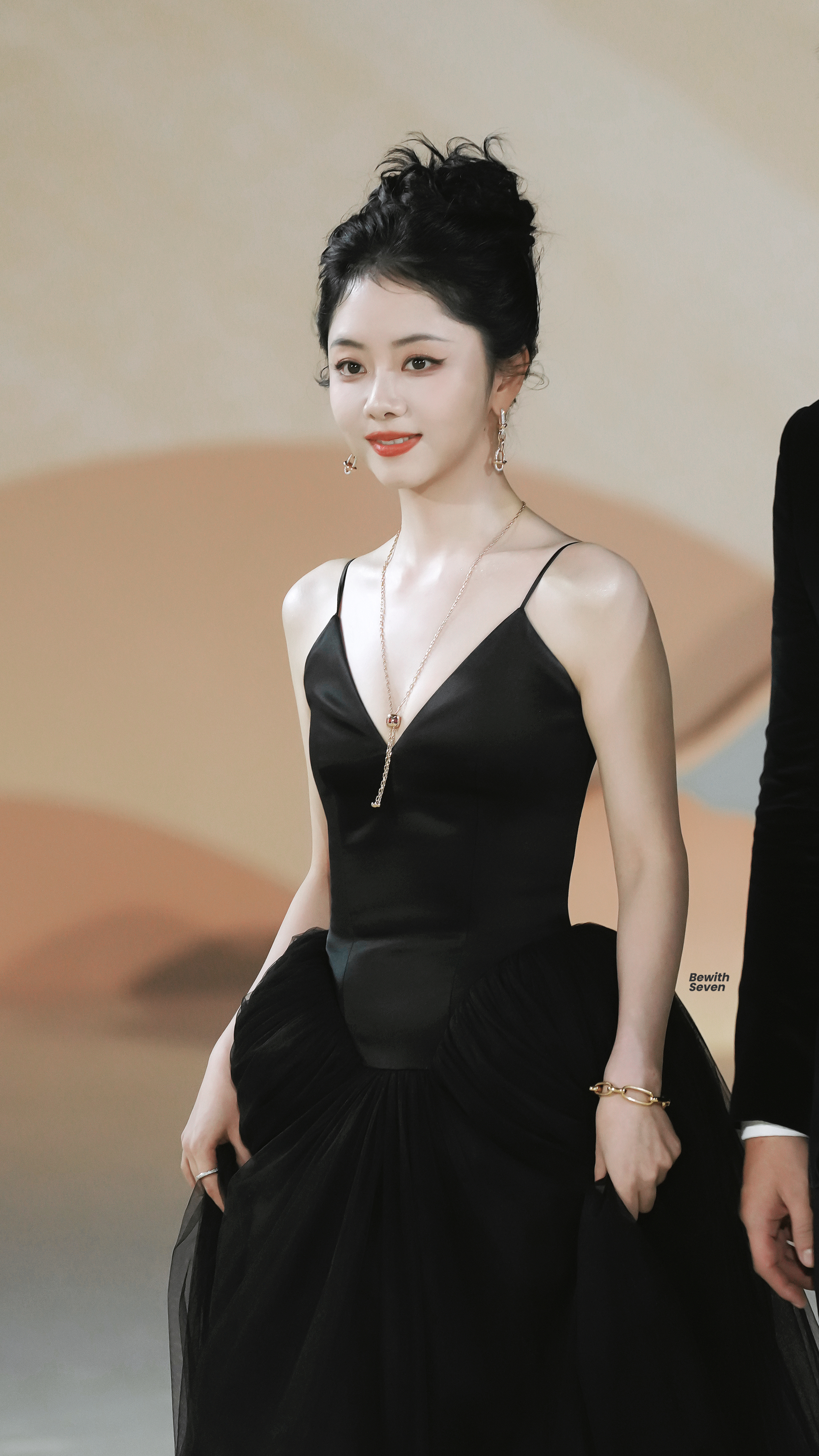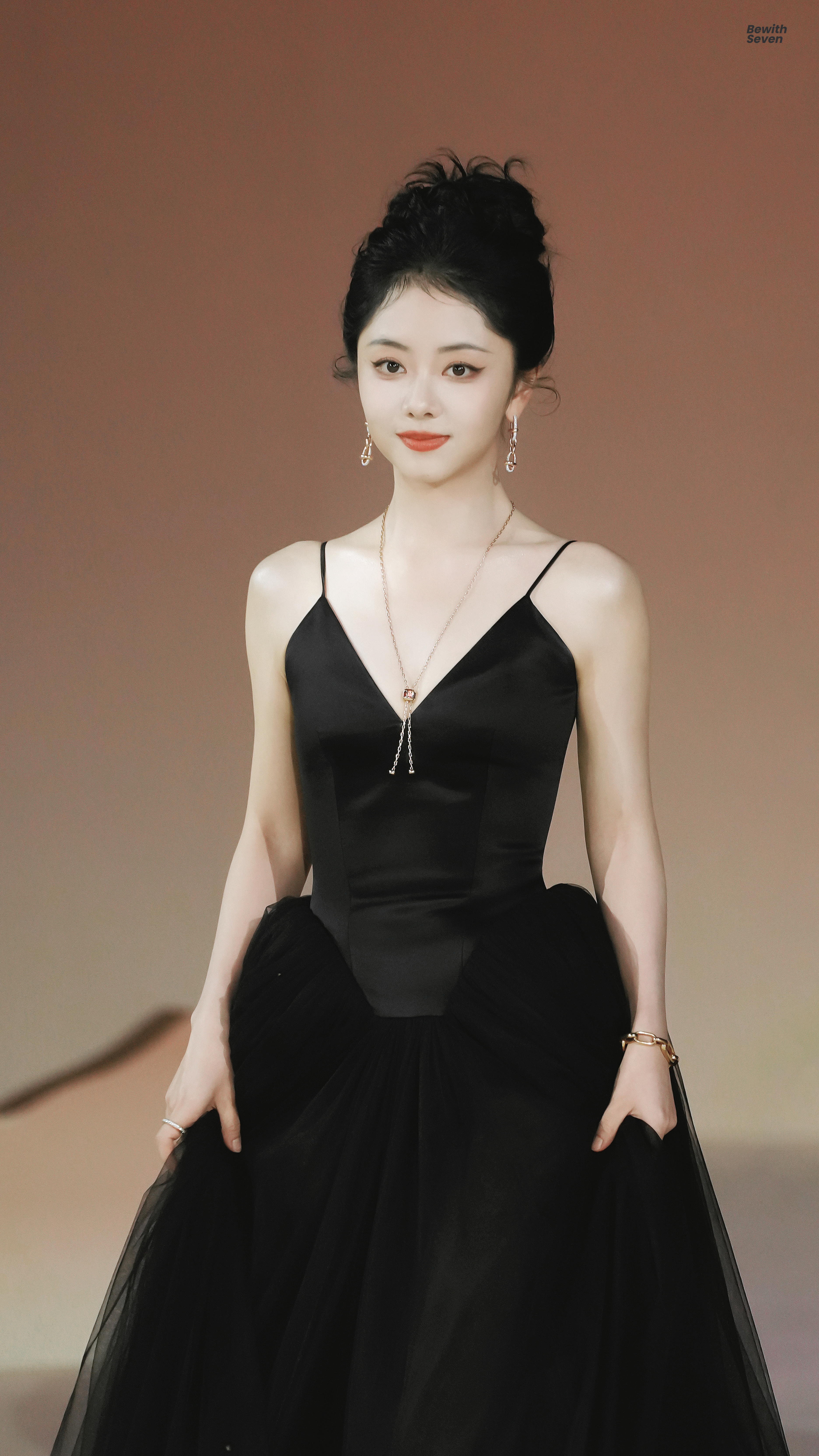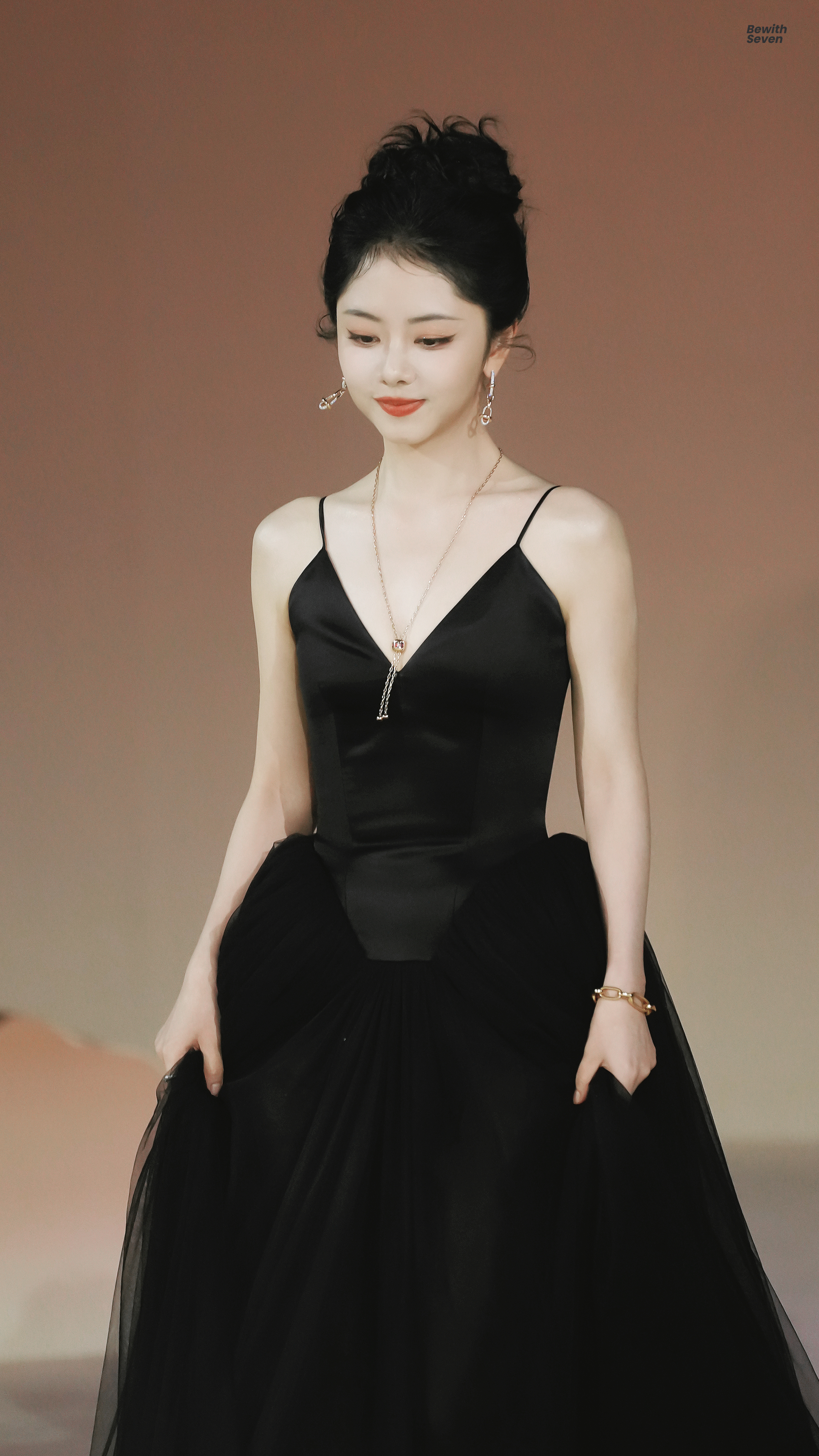 谭松韵 黑纱曳地,似揉碎的夜坠入裙裾;缎面裁成的星光,在肩颈间漾开清冽锋芒。 谭松韵刘学义新剧天崩开局