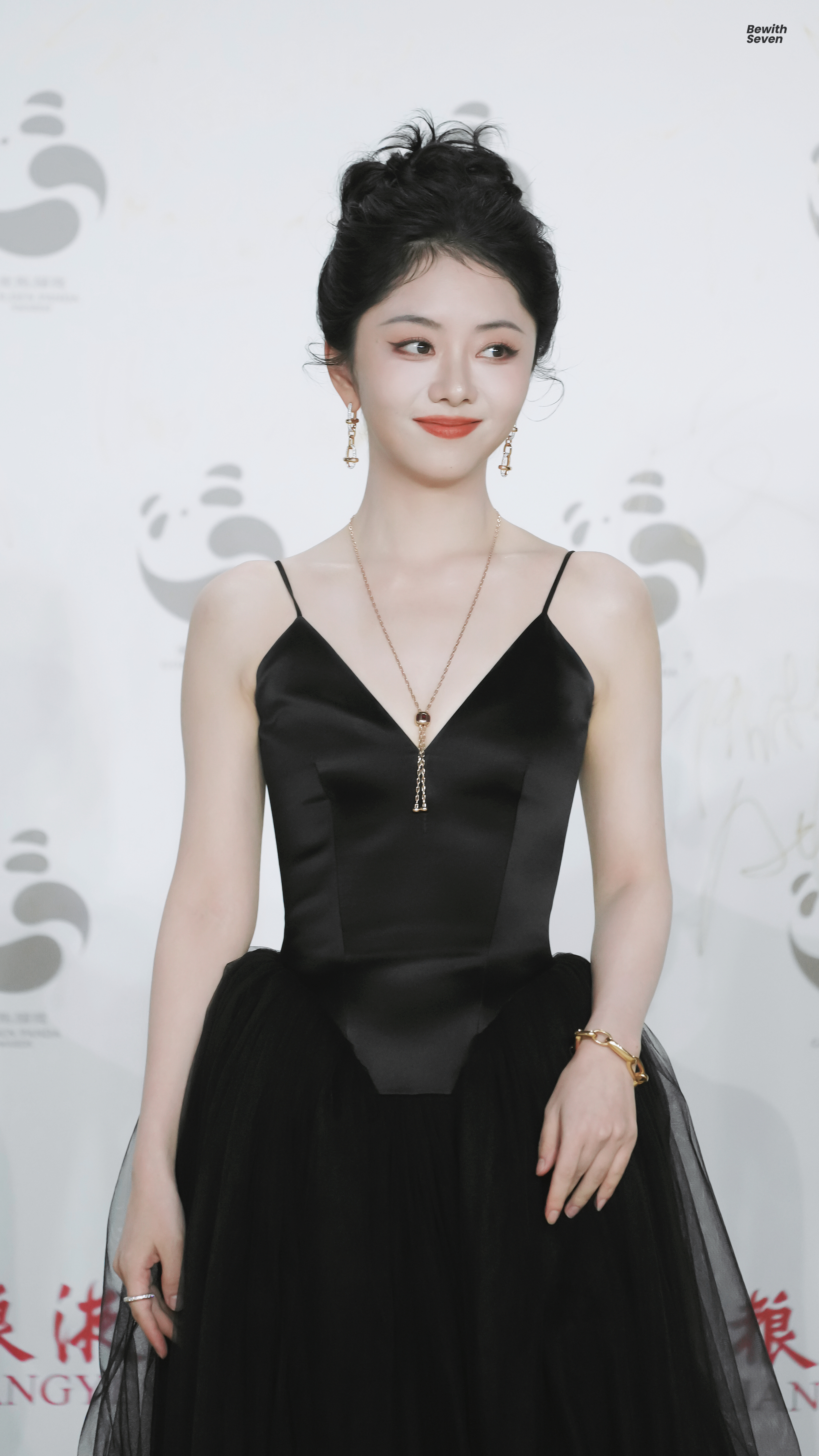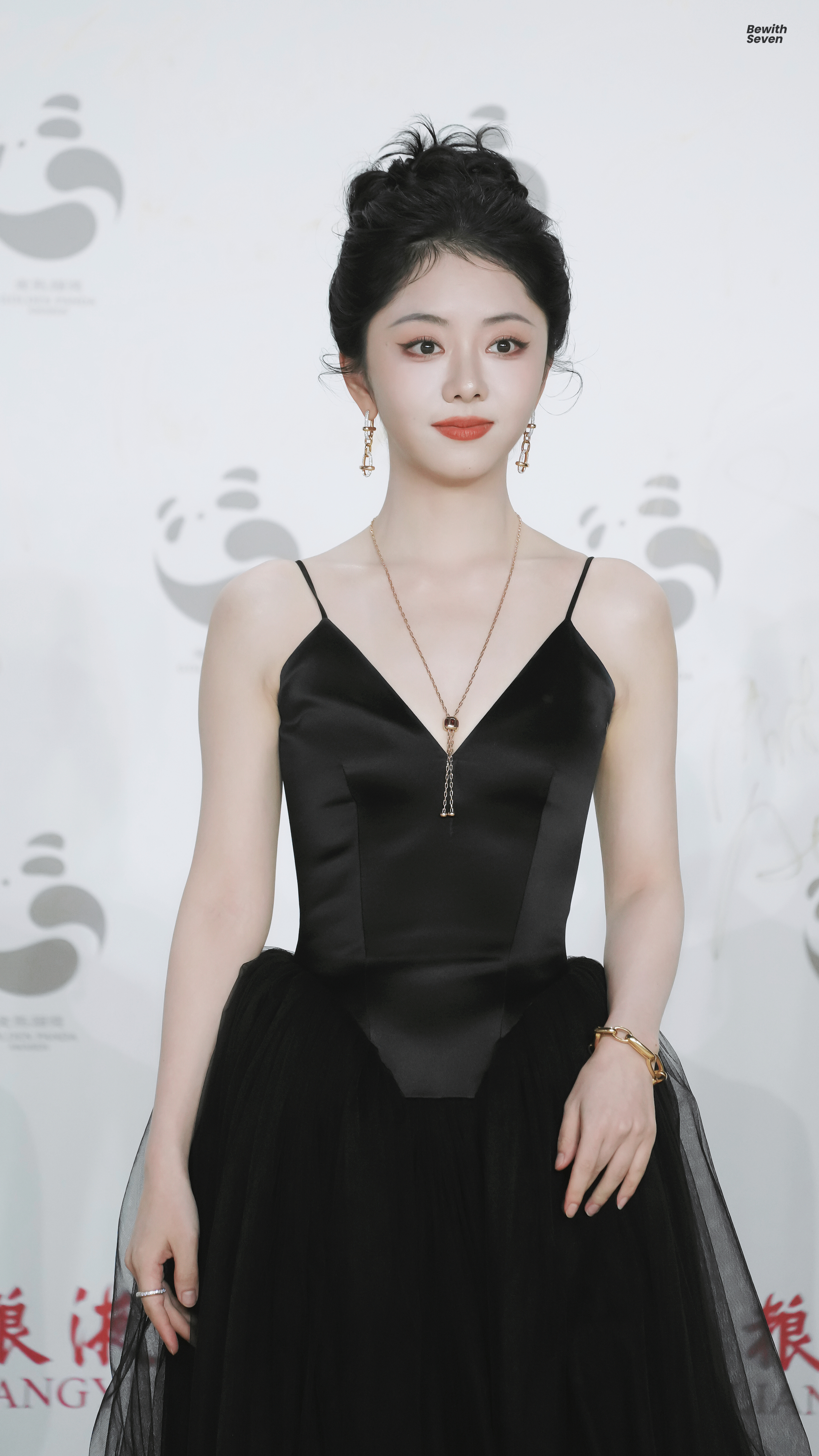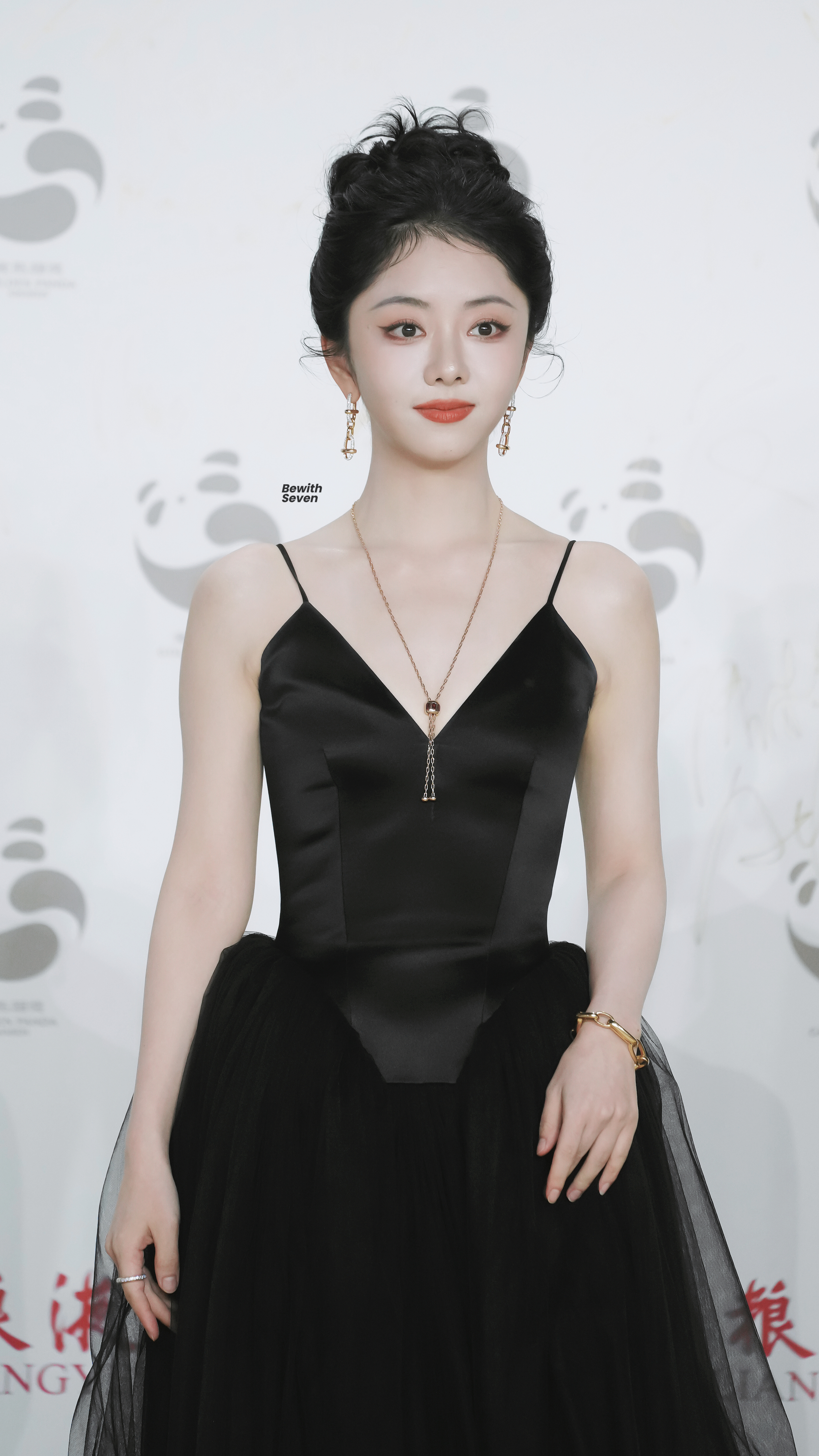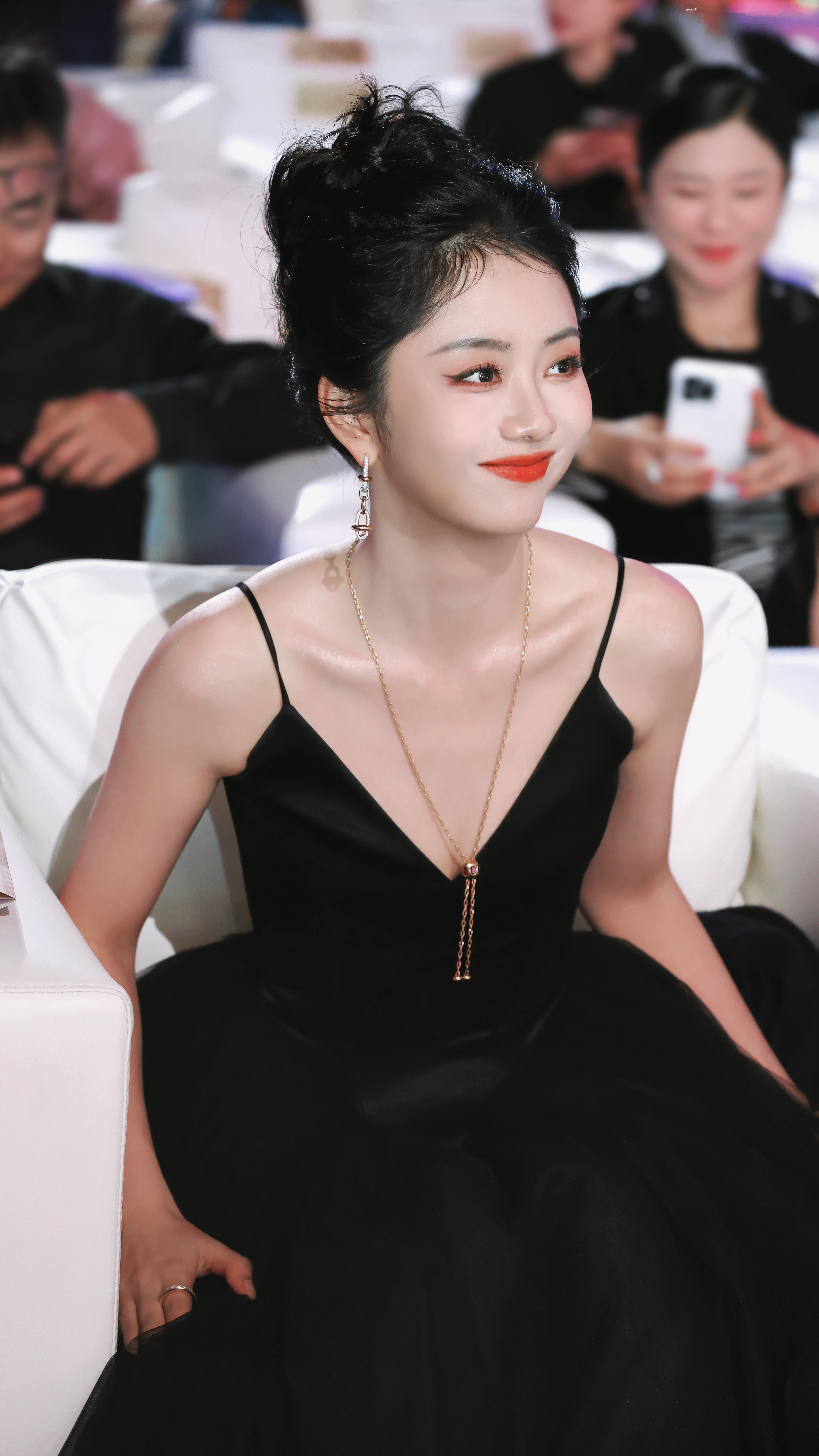 谭松韵 黑纱曳地,似揉碎的夜坠入裙裾;缎面裁成的星光,在肩颈间漾开清冽锋芒。 谭松韵刘学义新剧天崩开局