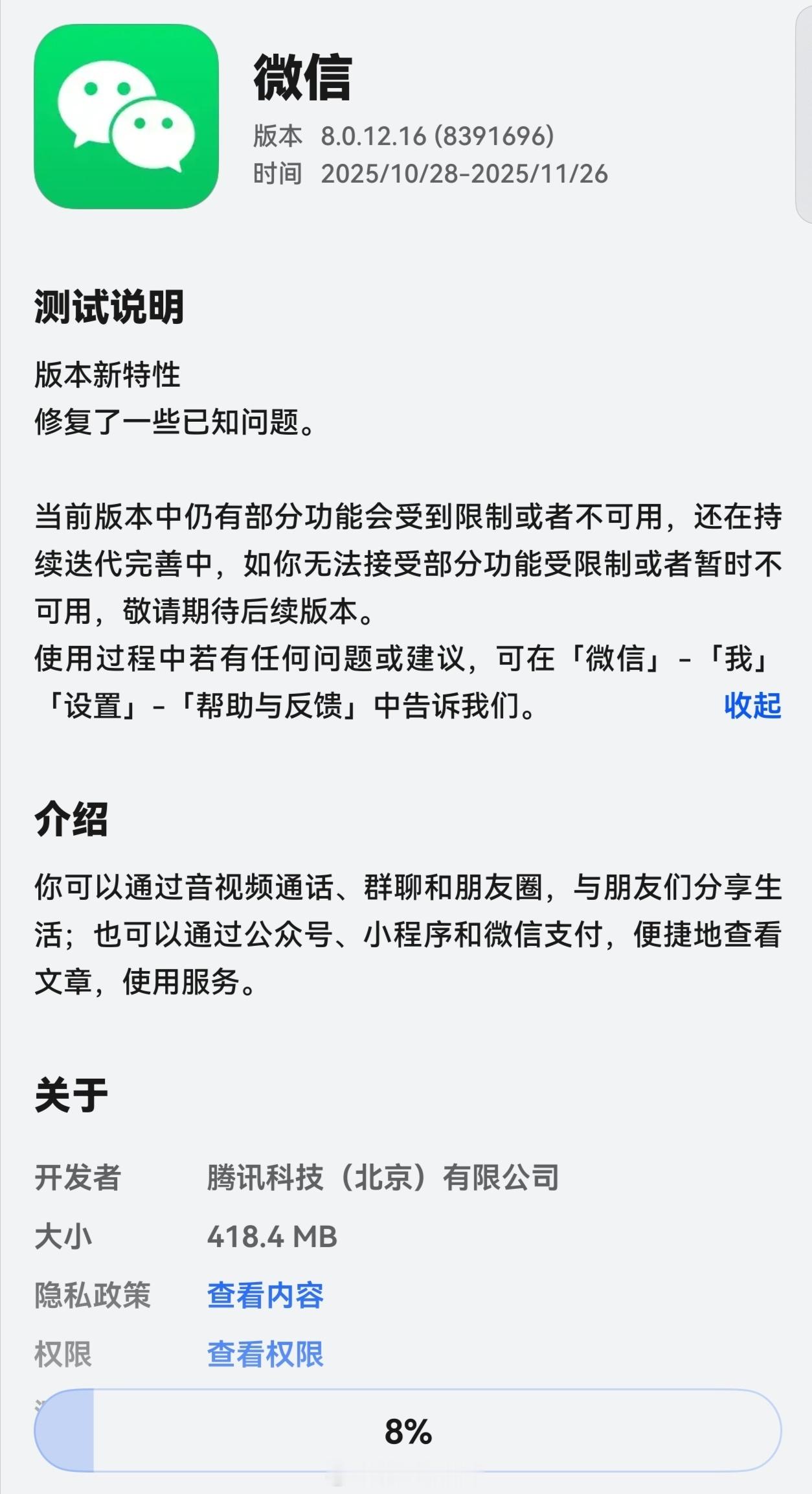 微信鸿蒙版8.0.12.16邀请测试,修复了一些已知问题。新增红包封面功能。