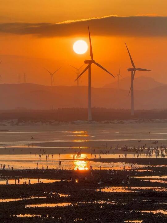 到长江澳,看橘红色的日落与风车相映衬🌅
