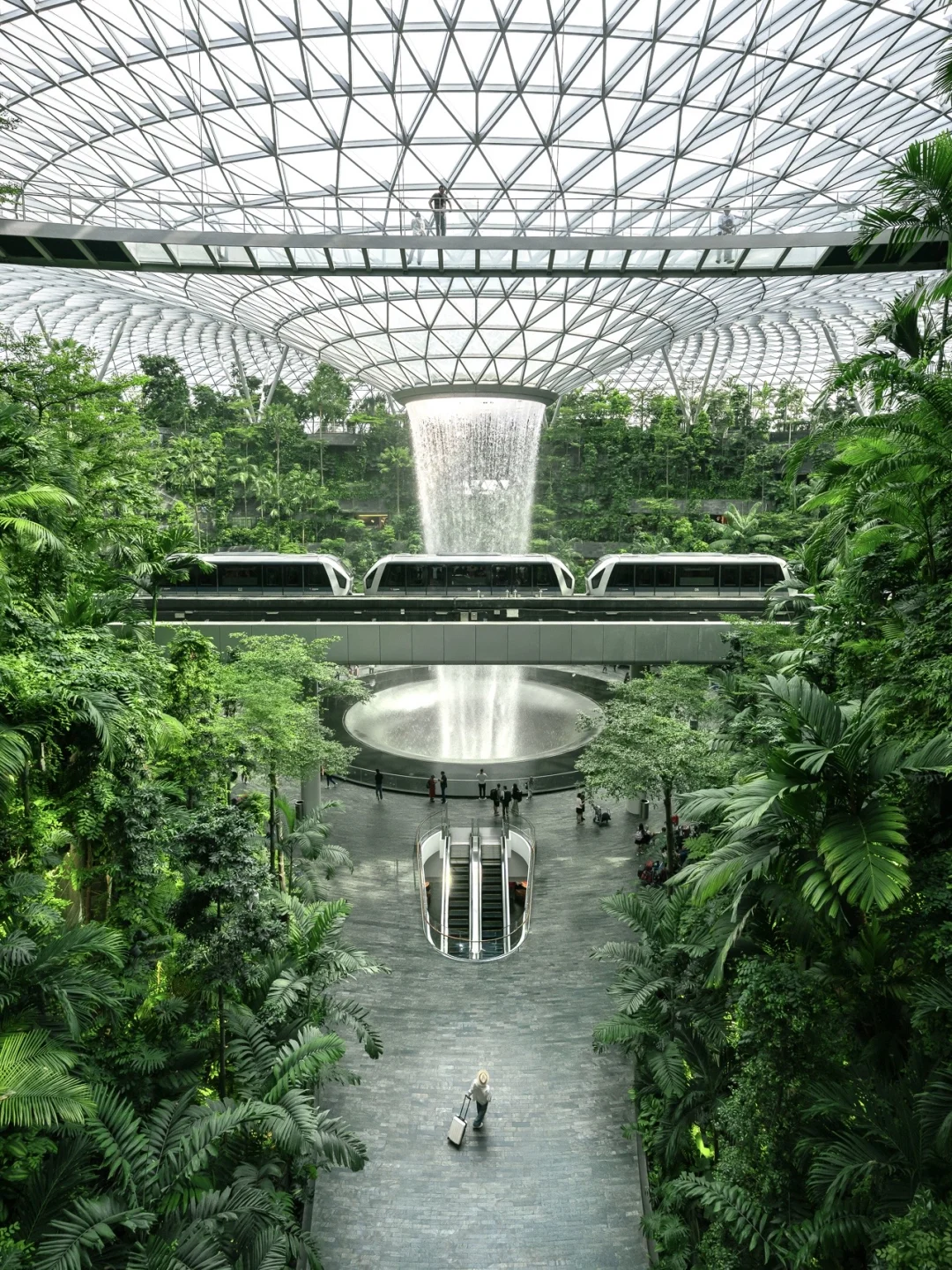 樟宜机场的瀑布与小火车,仿佛走进《疯狂动物城》