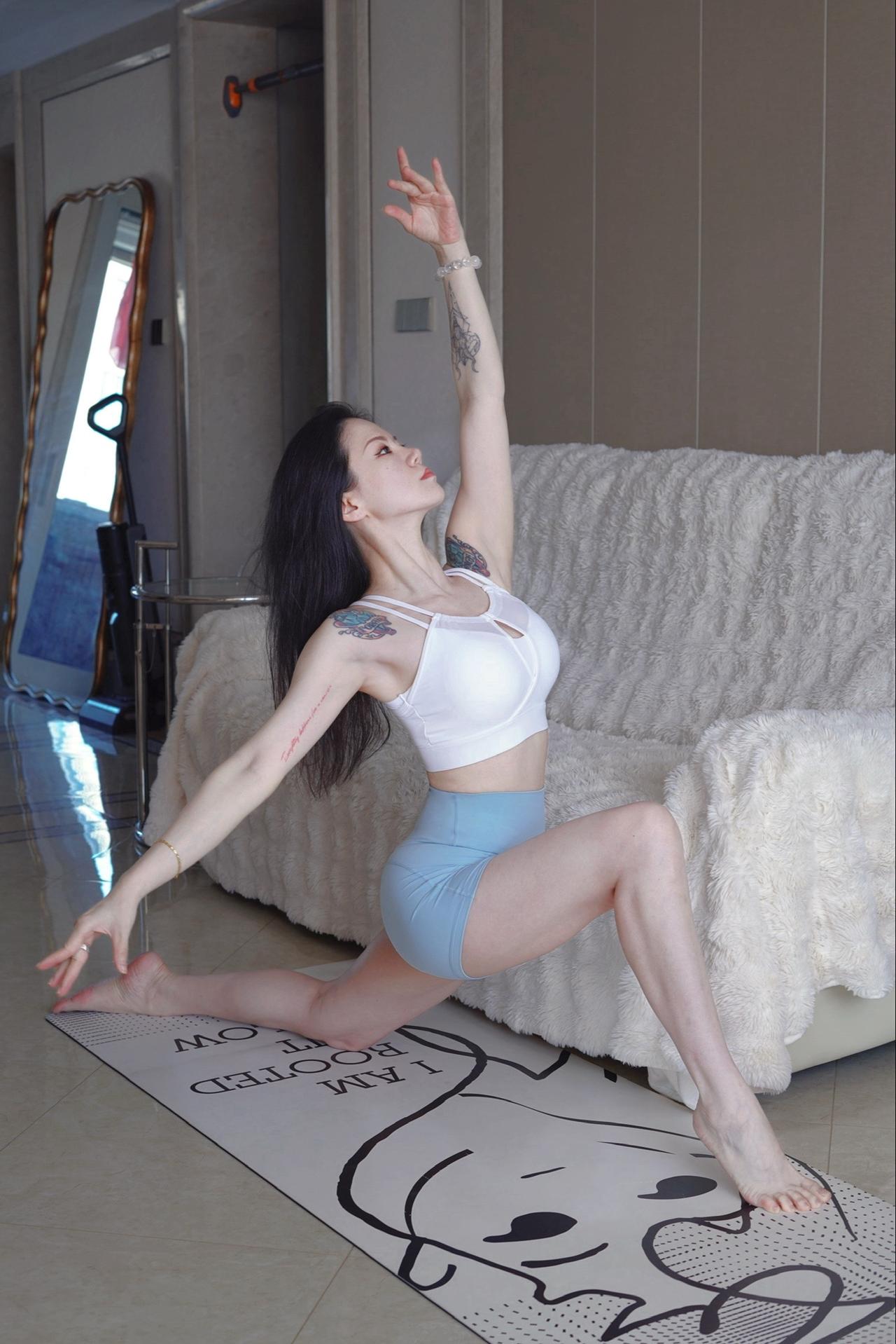 居家瑜伽|身体是我摆放在未来的几何图形。瑜伽女孩 瑜伽拍照体式