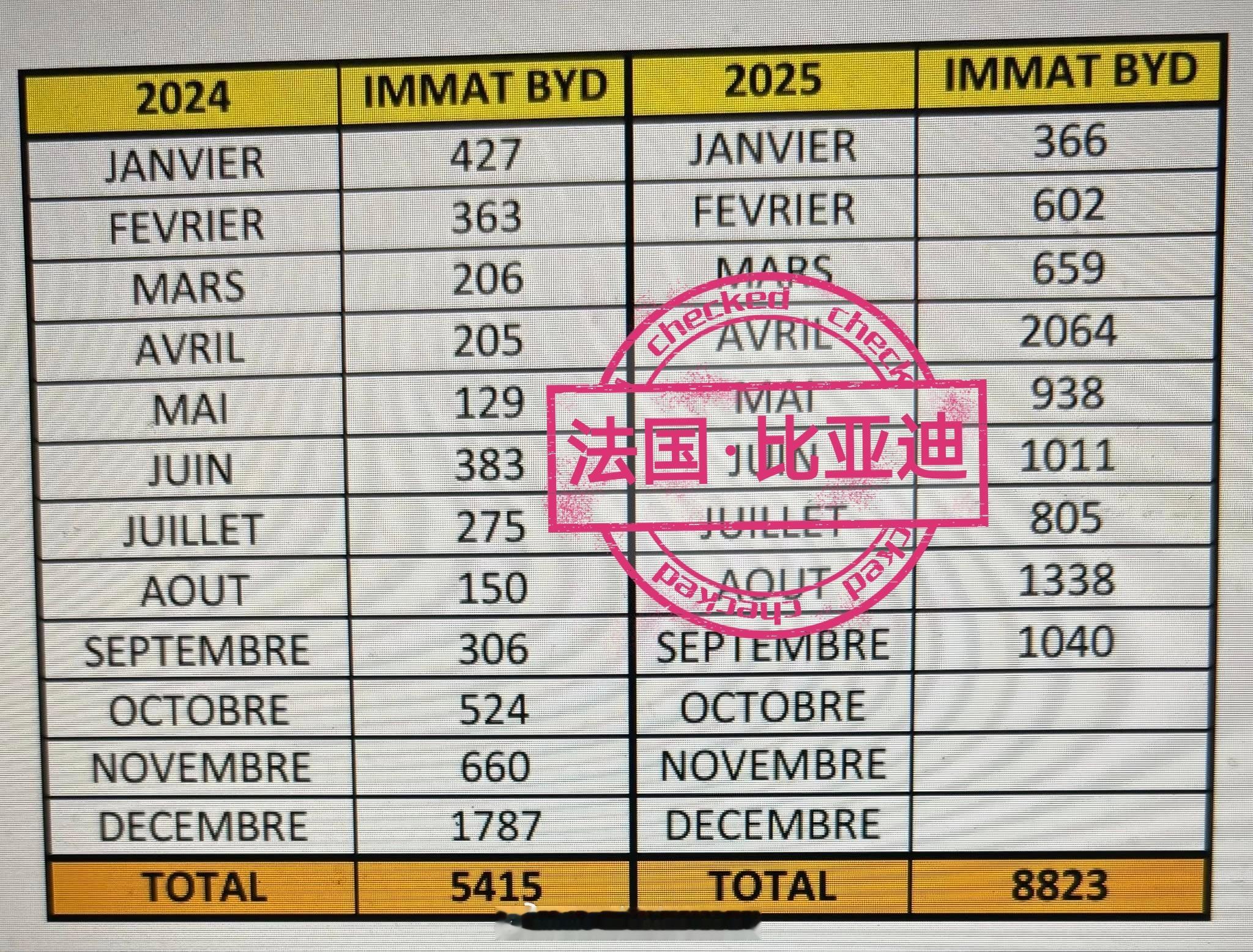 截止10月23日,比亚迪法国2025年累计销量破万!