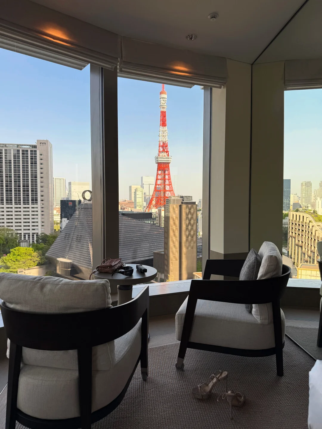 酒店控真的很爱死这个房间了 睁眼就看到东京塔 空间超级超级大 我的漂亮衣服可以摆摊