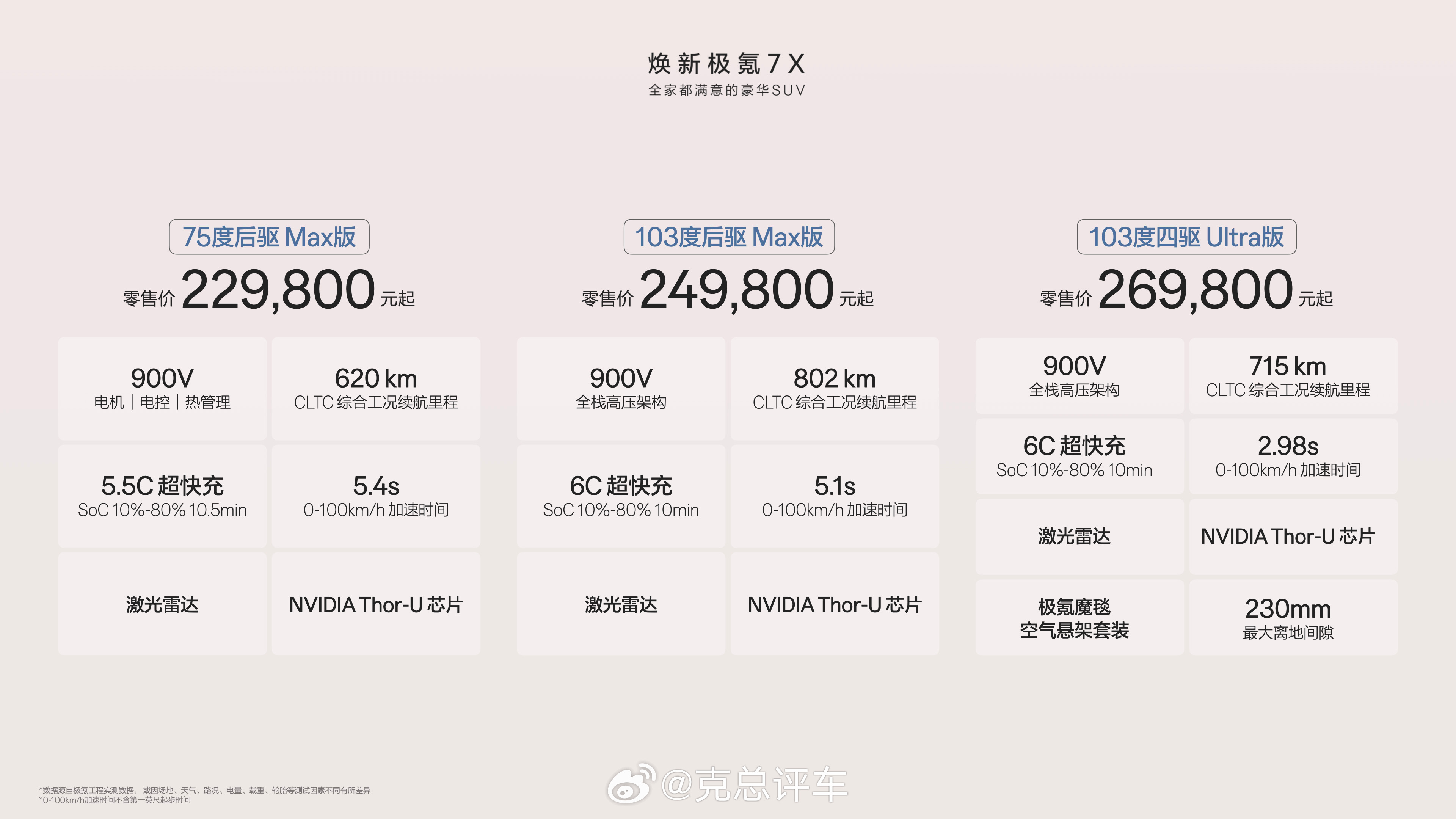 智能辅助驾驶方面:新车搭载Thor-U芯片和900V高压系统,使用千里浩瀚辅助驾驶H7方案,最大续航里程(CLTC)802km。可实现D2D车位到车位领航辅助、NZP城市自主领航辅助、APA自动泊车辅助、RAPA遥控泊车辅助等泊车功能。