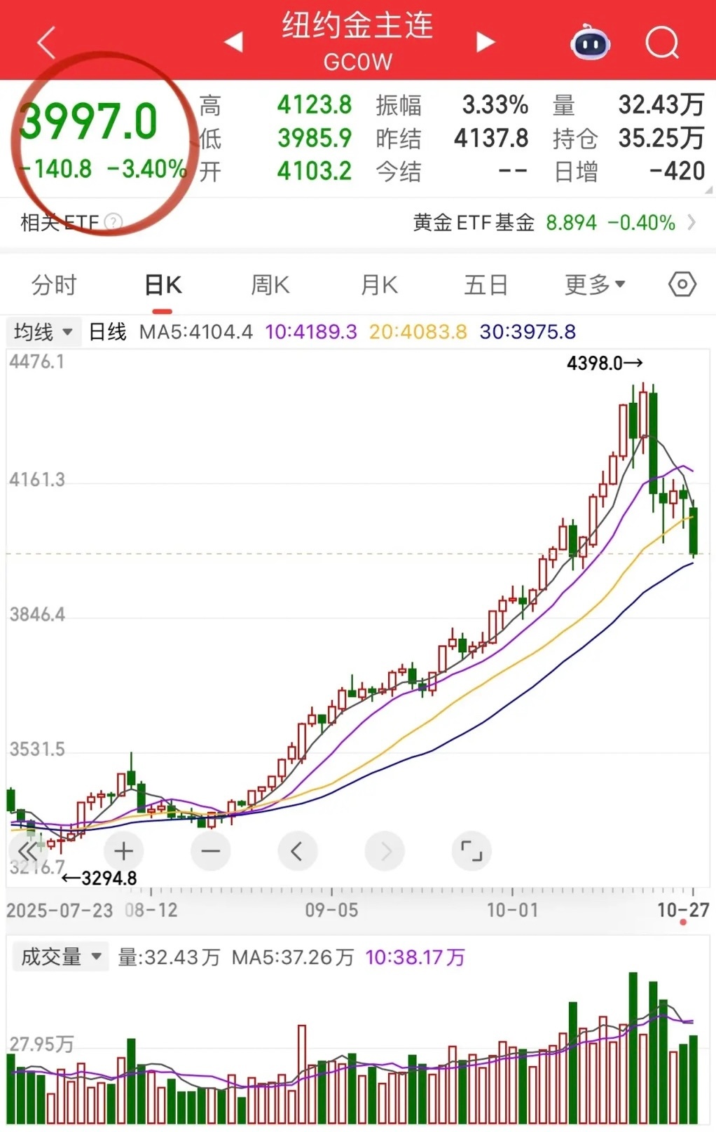 黄金重挫3%跌破4000美元/盎司。