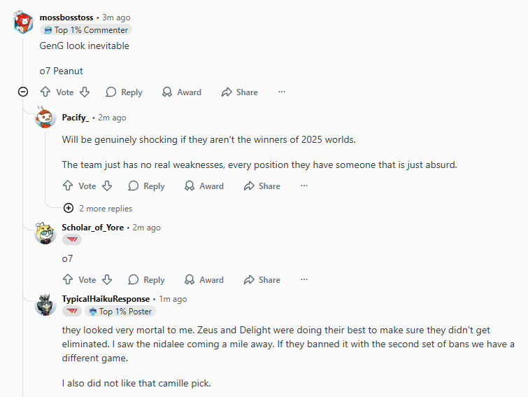 虎扑10月28日讯GEN以3-1战胜HLE晋级S15全球总决赛半决赛引发了Reddit网友热议,部分内容如下: