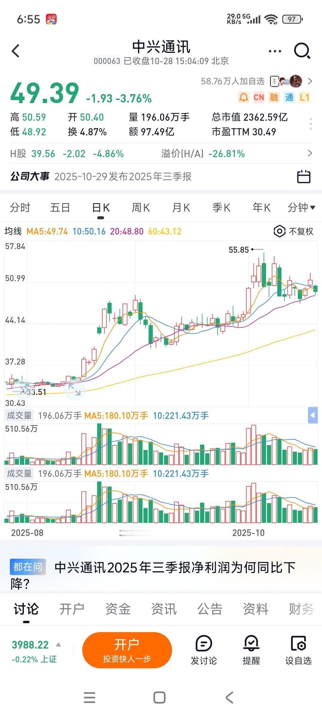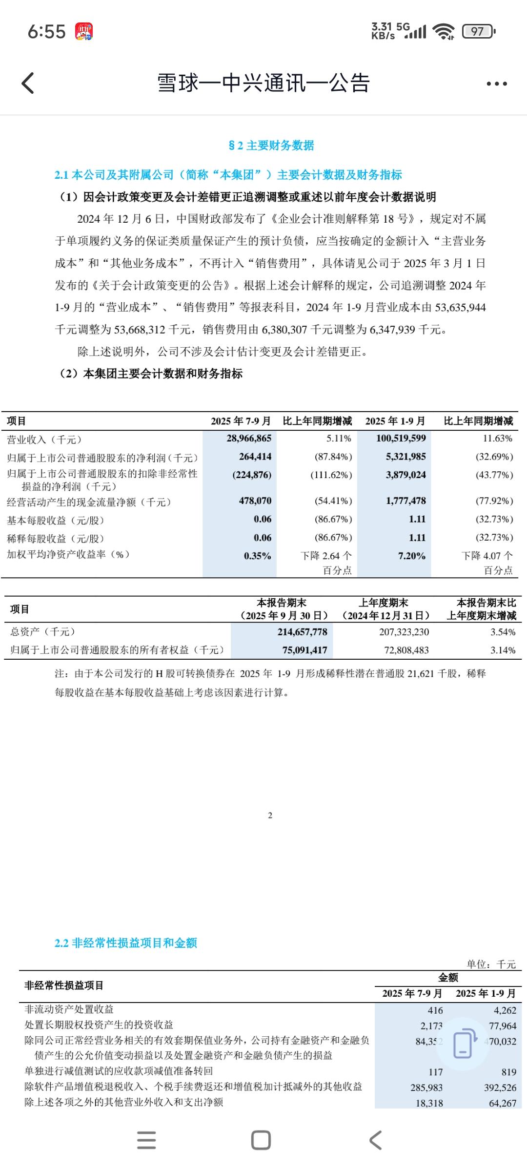 中兴通讯三季度业绩太炸裂了,真的要“裂”了...三季度归母净利润大跌,扣非还出现亏损,以牺牲净利润推动的营收,也仅仅扩张了5个百分点... 此业绩,主力应该早就知道了,难怪这几天大开大合,原来是为了出货... 唉,明天估计要跌停了...好吧,今后再也不吹它了,不值得... 期望越大,失望越大,中兴通讯一直让你失望...