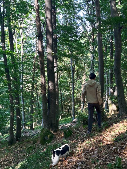 他们跟着我到后山摘野果,守护在我身边,耳朵高高竖起,一边小心翼翼地嗅着草丛里的动静,一边回头看我是不是跟丢了。