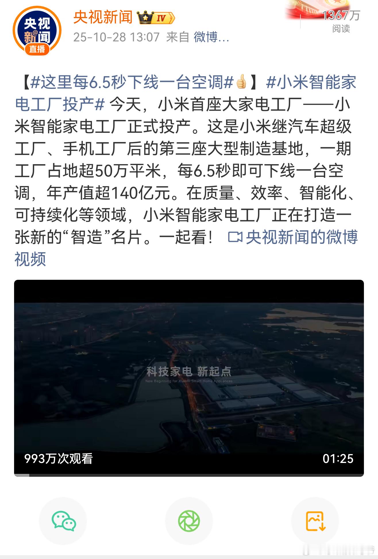 每6.5秒即可下线一台空调,年产值超140亿元。在质量、效率、智能化、可持续化等领域,小米智能家电工厂正在打造一张新的“智造”名片。