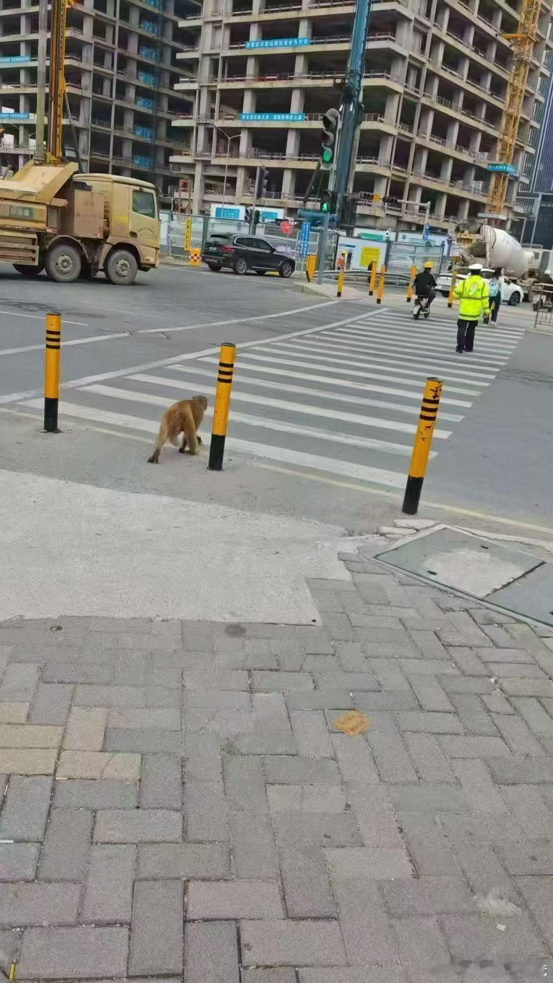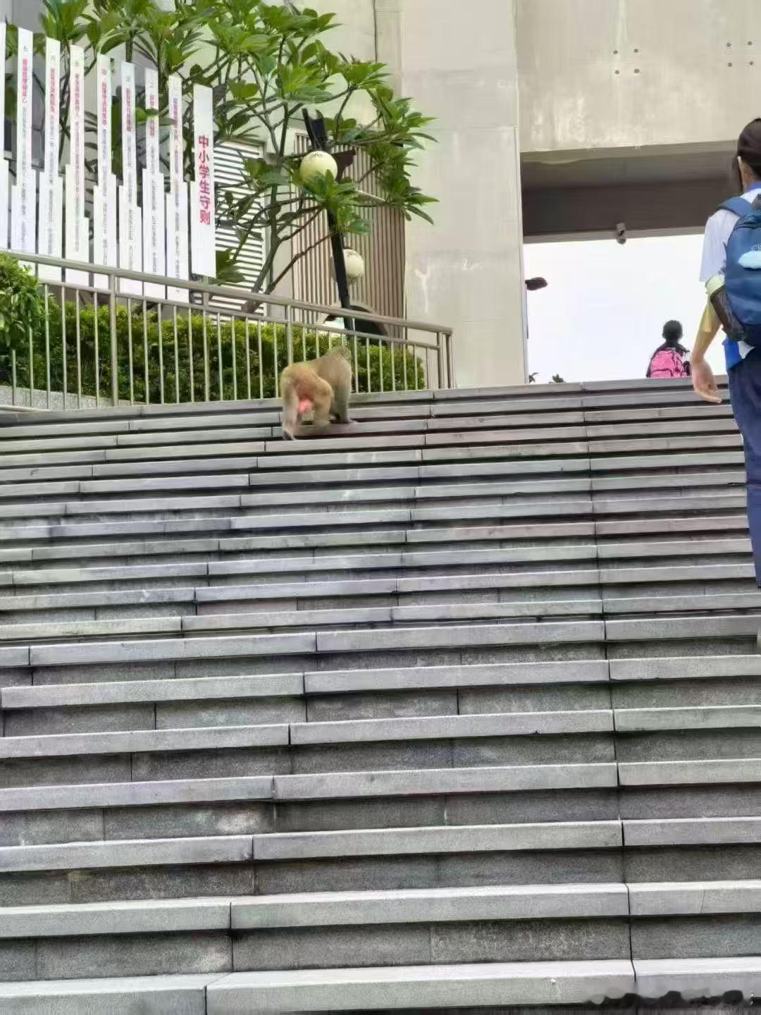 山上的猴子是饿了吗?在深圳市区乱逛。