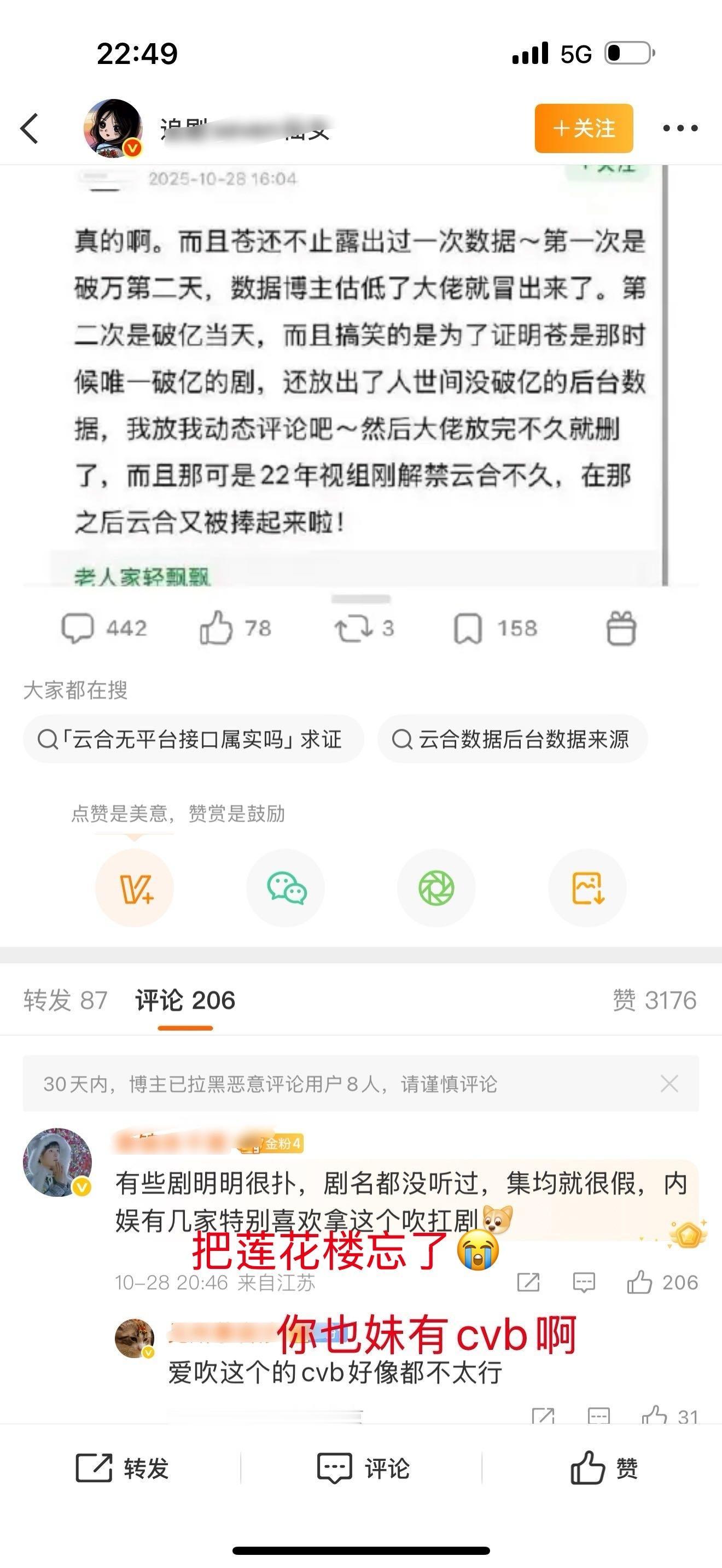 好了,莲花楼这剧粉丝唯一能吹的云合也被开除了,那可以说他从来没播过剧了。[笑cry]