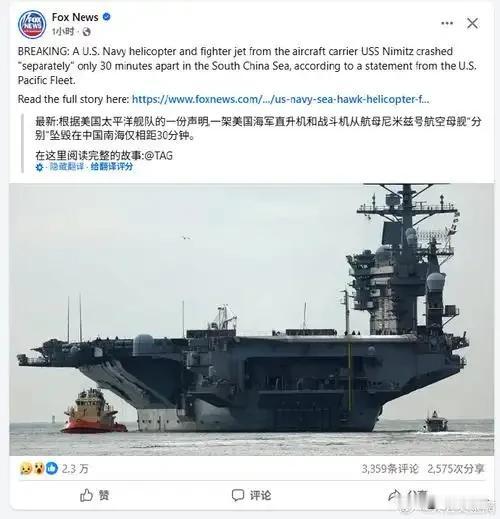 美军南海连摔2机是被电磁攻击?别脑补了!真相超打脸💥 我最近刷到美军一小时内南海连摔2架军机的消息,评论区全在猜“是不是被电磁攻击了”,看得我差点信了科幻大片剧情…结果扒完细节才发现,根本没那么玄乎,纯属美军自己“掉链子”! 先理理时间线:10月26号下午,“尼米兹”号航母上的MH-60R直升机刚起飞就扎海里,半小时后F/A-18F战斗机也跟着坠海,好在6个人都救上来了。这种低概率连摔,难怪大家会脑洞大开,但3个实锤直接戳破“电磁攻击”谣言: ❌ 美军自己都没查到异常信号 “尼米兹”号的电子战系统全程开着,捕捉到的200多个信号全是民用的,连半点定向干扰的频谱特征都没有——真要电磁攻击,哪能一点痕迹不留? ❌ 周边压根没军事异动 当时最近的中方舰船还在150海里外正常巡航,既没开武器系统,也没出动战机,连“准备动手”的调动迹象都没有,总不能凭空变出干扰吧? ✅ 故障原因其实很直白 技术排查结果出来了:直升机是主减速器漏油,战斗机是液压系统密封件老化,俩问题八竿子打不着,跟“电磁干扰”导致的系统瘫痪完全不是一回事。 我觉得与其脑补“神秘攻击”,不如看看美军最近的状态吧,这两年他们在南海频繁搞演练,装备损耗快、维护跟不上,之前也出过好几次类似的机械故障。与其猜来猜去,不如等着看美军后续怎么补这个“窟窿”了。