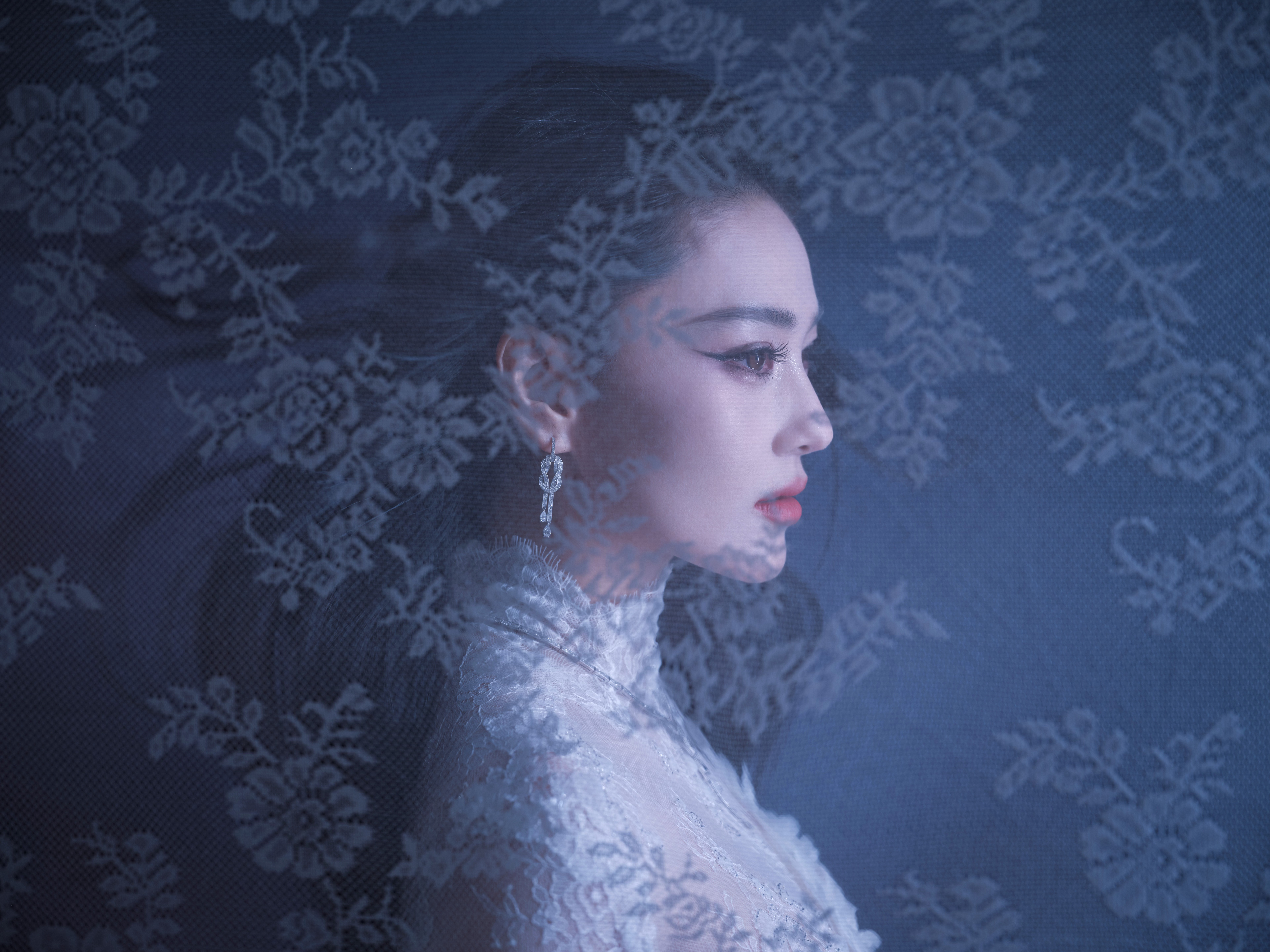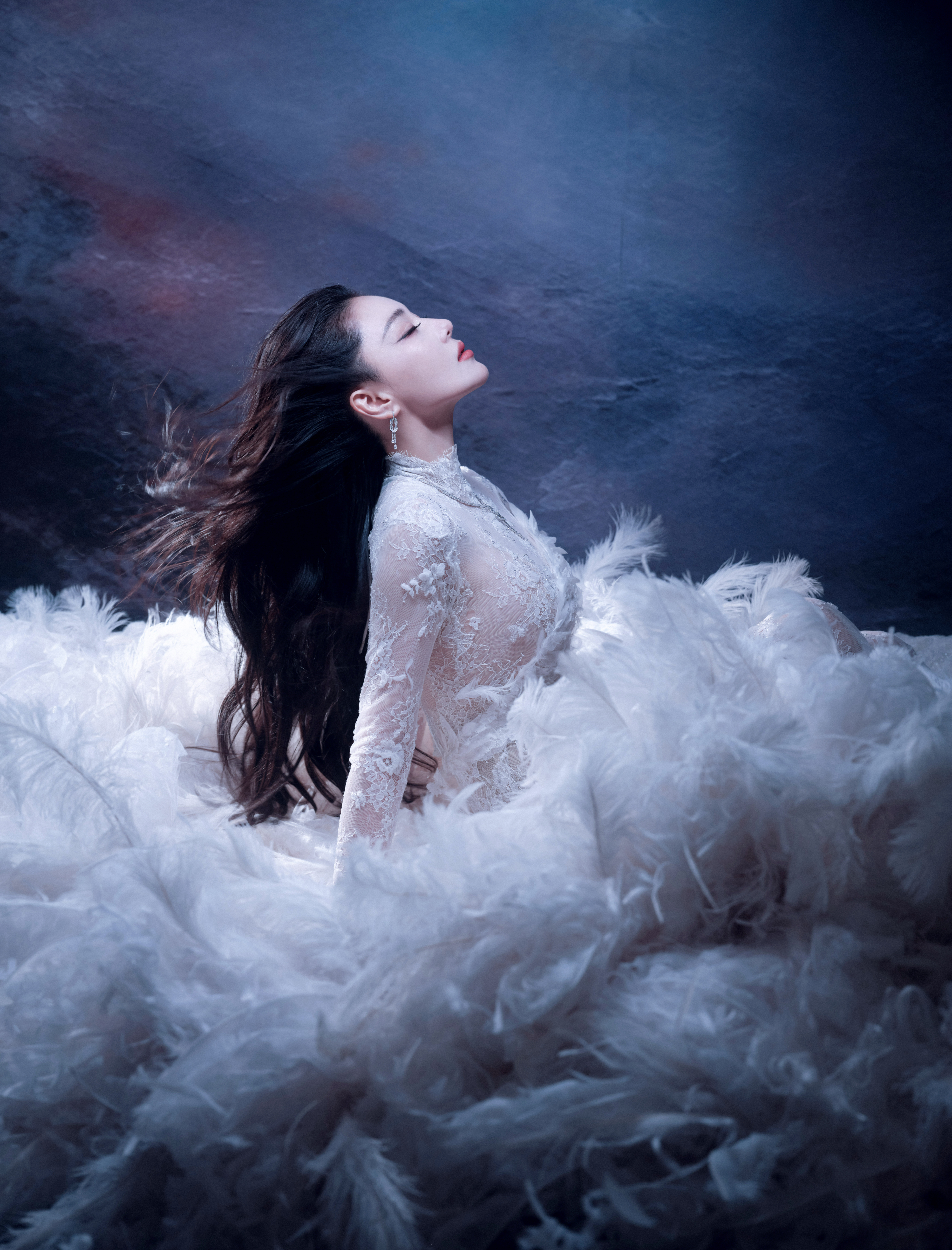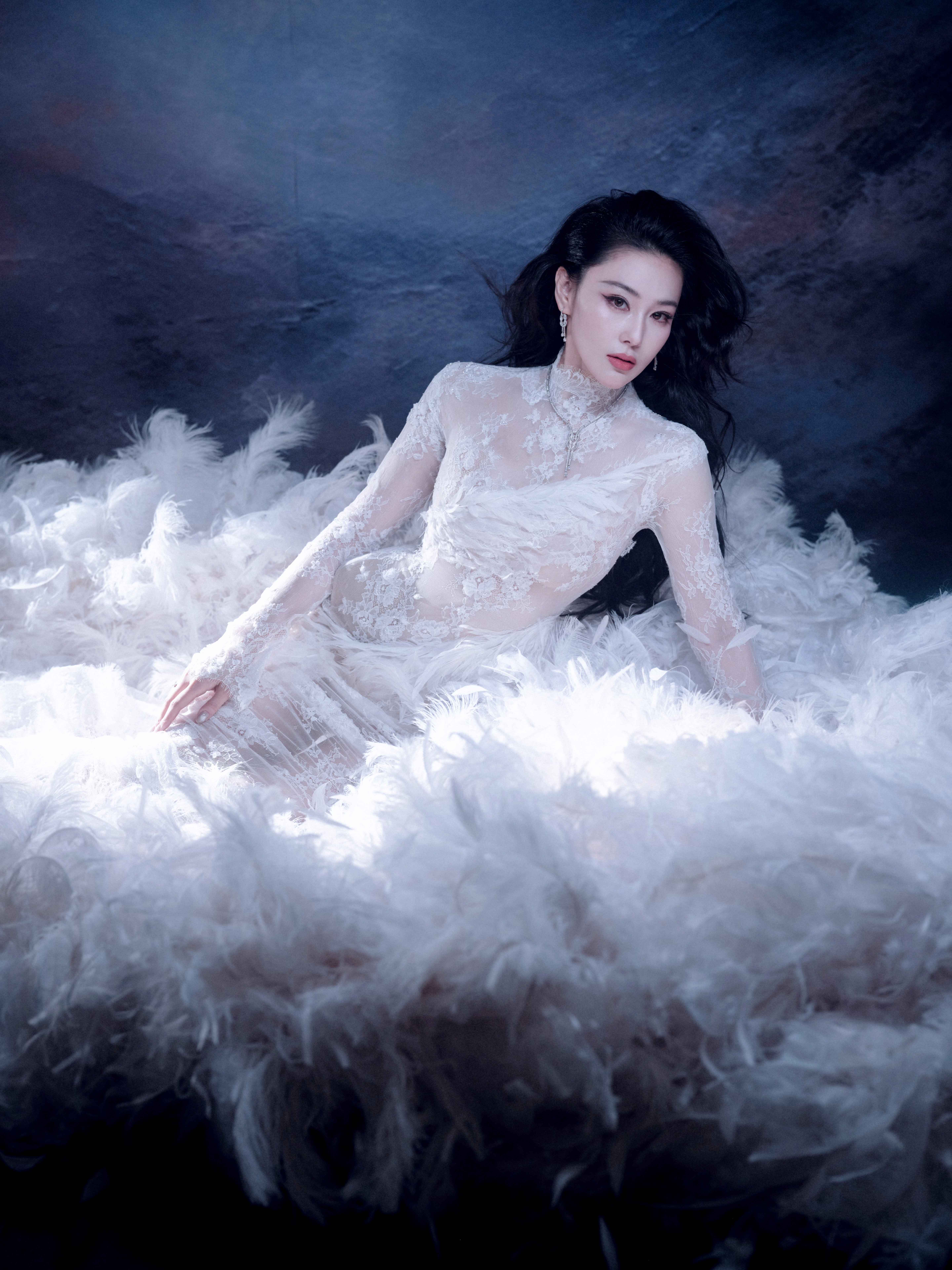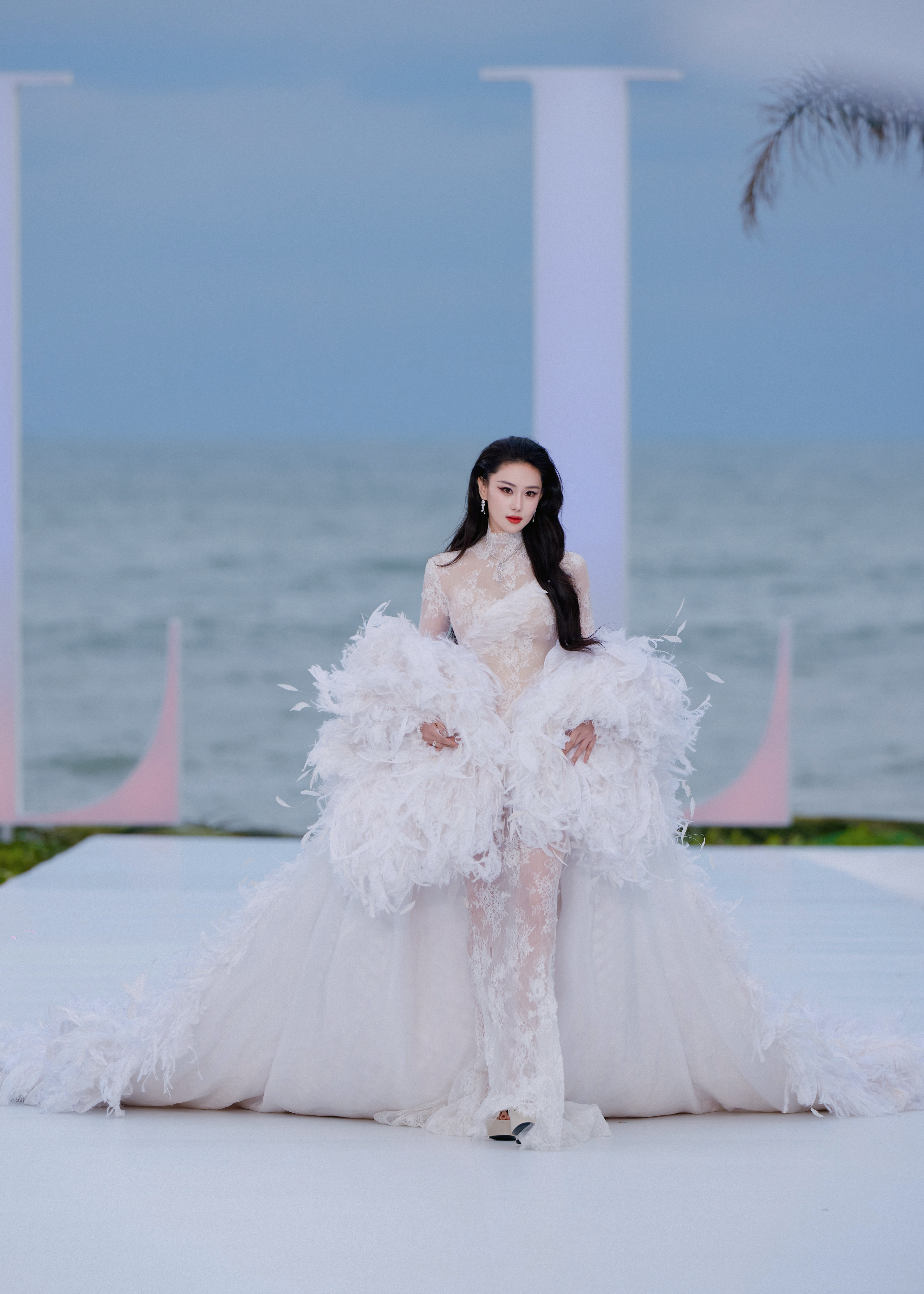 张馨予 于纯白羽浪中翩然伫立,蕾丝曳地如月光织就的梦。张馨予化妆师火了