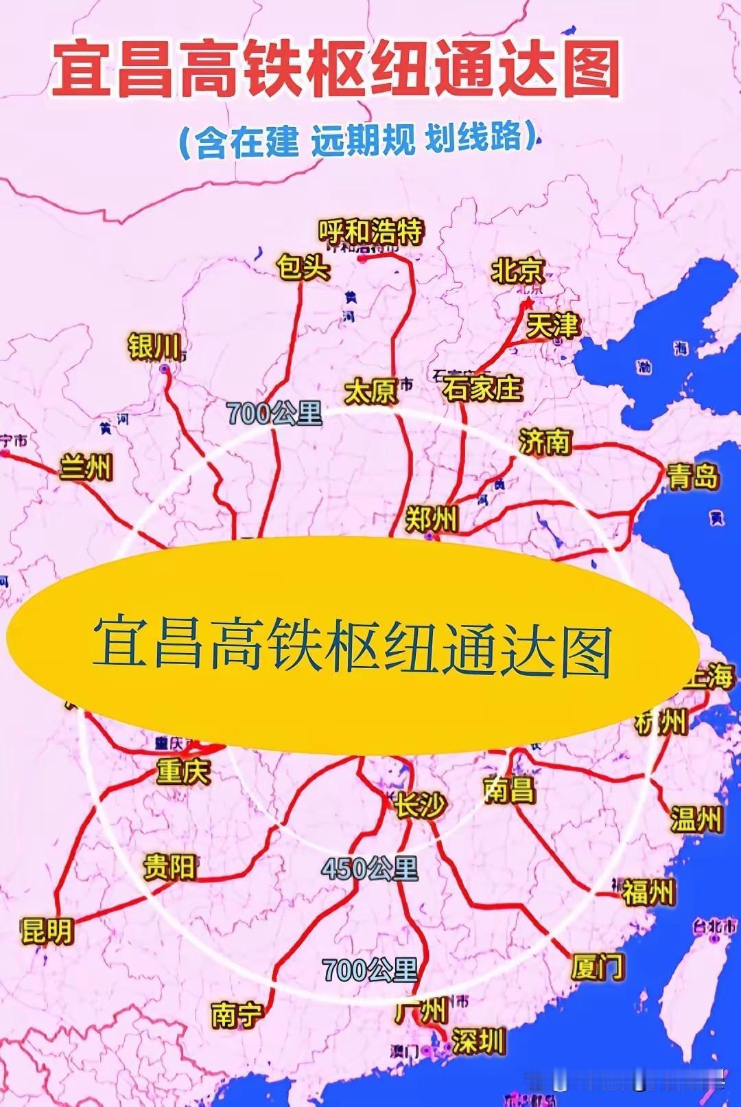 宜昌,是普速铁路时期的弱者,高铁时代的王者!从只有一条支线铁路——鸦宜铁路,开始到沪汉蓉快速铁路,沿江高铁,呼南高铁,宜兴高铁,十宜高铁(规划中)!再从宜昌站,宜昌东站,但宜昌北站!一步步逆袭!使宜昌形成,一纵 两横 一连, 七向的高铁枢纽城市,通达全国!