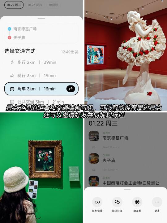出门旅行,我一般会用规划行程,地图形式一目了然,各景点之间的距离和交通方式清晰可见,还可以智能推荐周边的景点