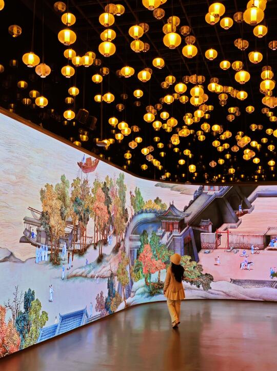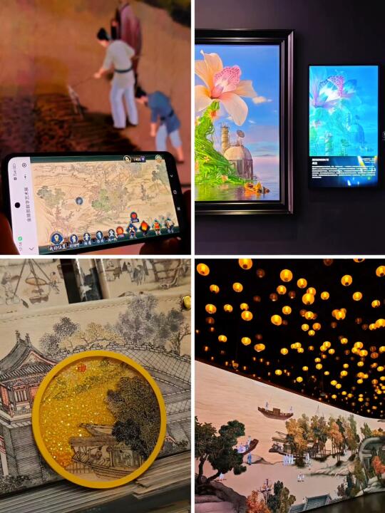 “先看金陵图,再逛南京城”,乾隆真爱之宝《金陵图》,最代表南京的一幅画,通过电子大屏幕,动态展现了宋朝街市的繁华景象,通过手机还可以和大屏幕互动,很有趣