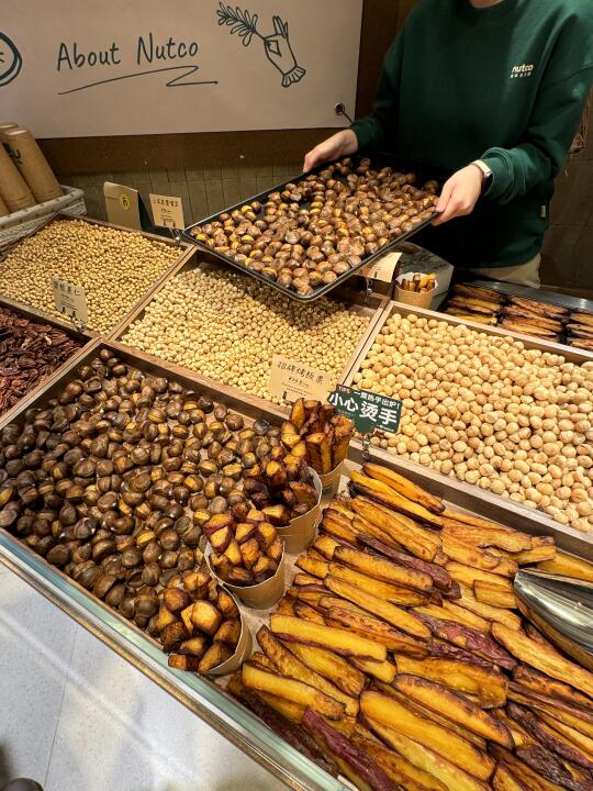 澳洲干粮店同款!!! 种类真的超级全,面包、零食、果干… 现磨花生酱、巴旦木酱抹吐司真的别太香了,还有黄金脆薯,软糯香甜,头一次在南京吃到这种红薯!! 还有小栗仔,一口一个好好吃😭