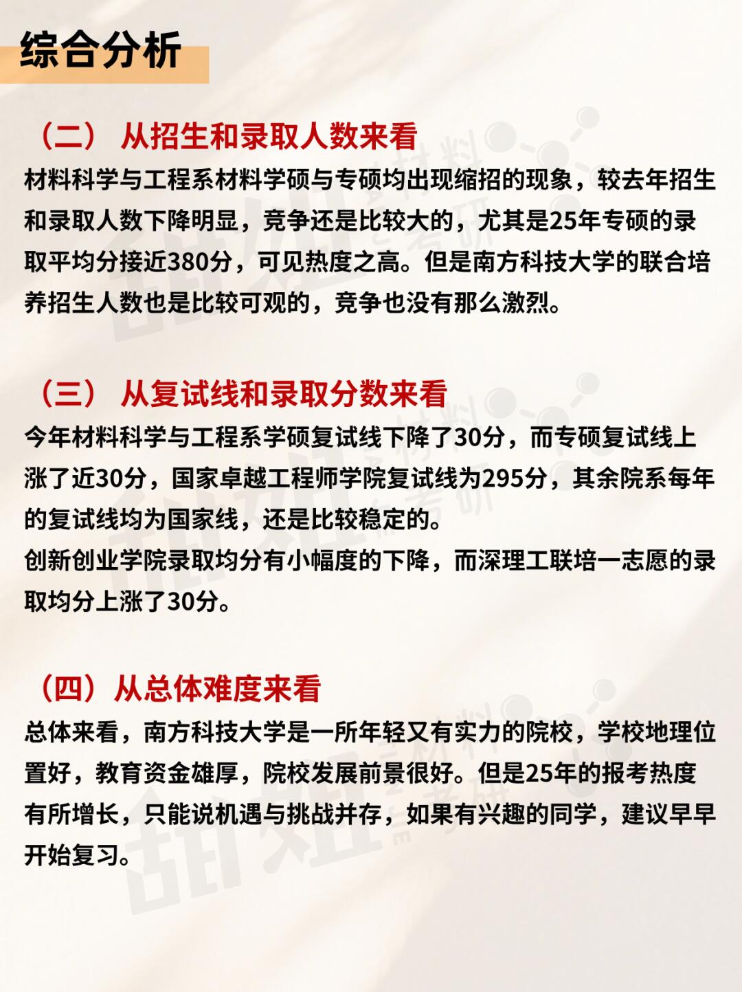 难度如何?好不好上岸? 材料专业 材料考研 26考研 材料择校 材料科学基础 考研 考研择校 上岸 南方科技大学 考情分析