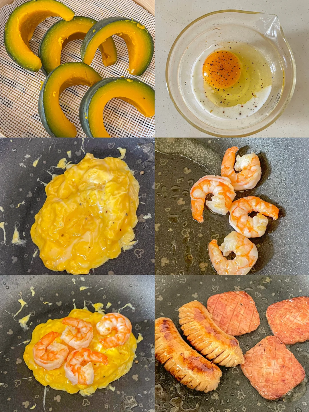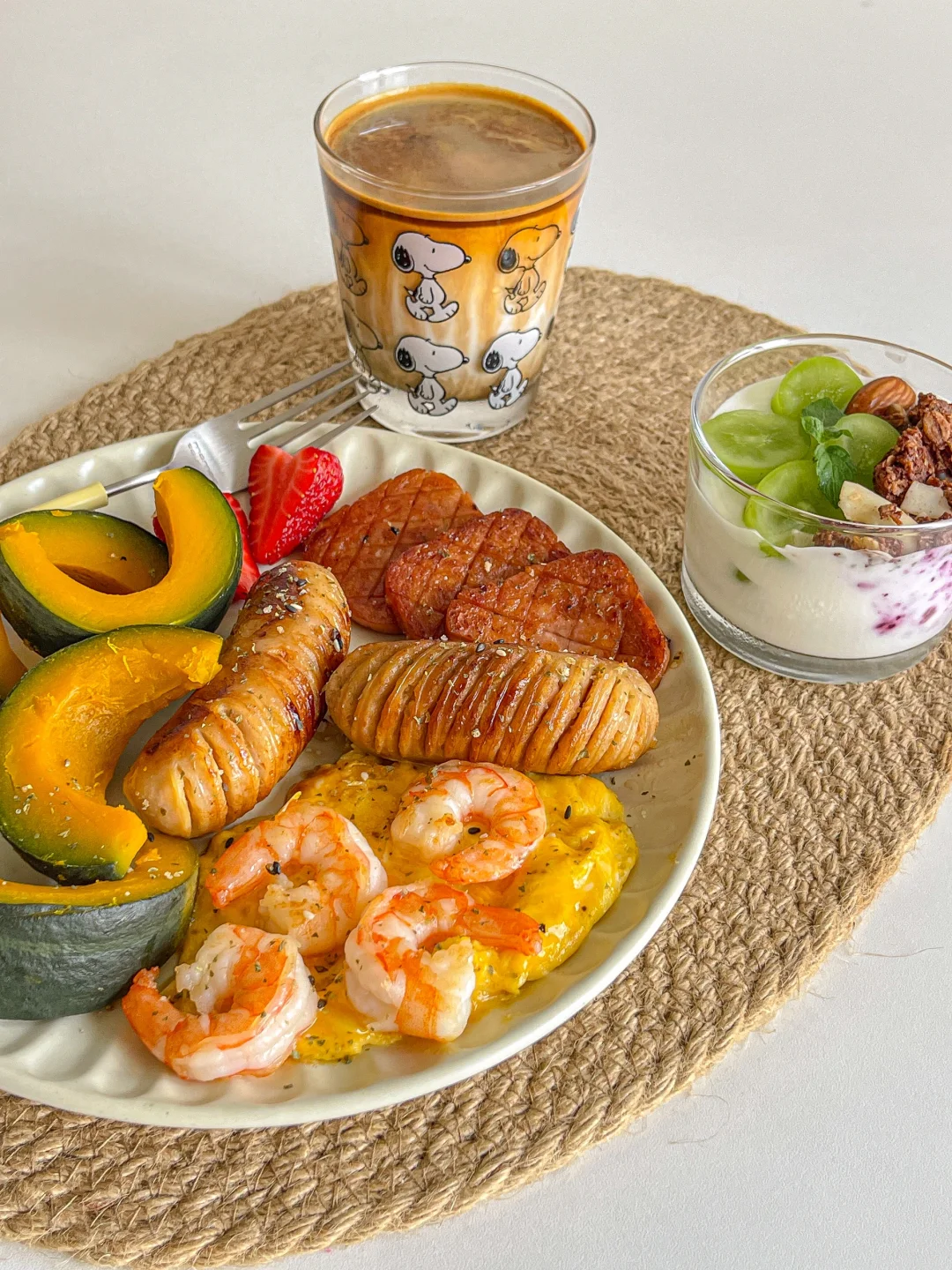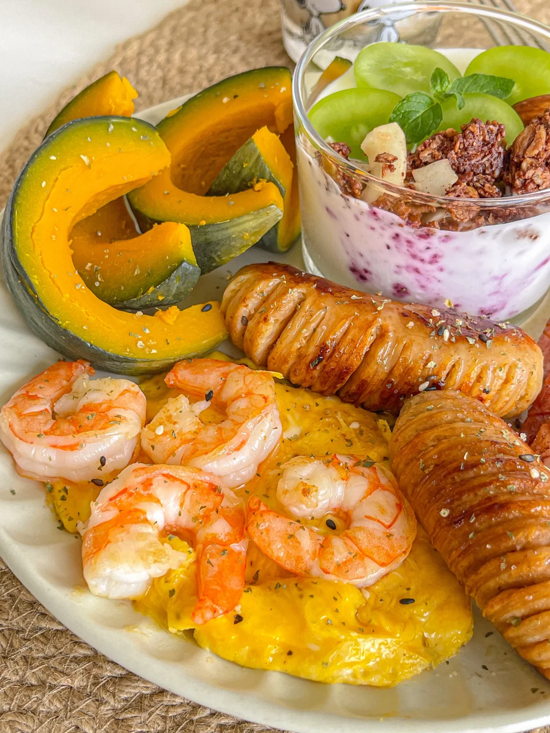一人食brunch🍤虾仁滑蛋贝贝南瓜🥣酸奶杯